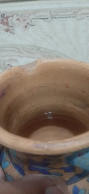 فقط دسته شکسته بسیار قدیمی از ترک های روی لعاب میشه به قدمتش پی برد