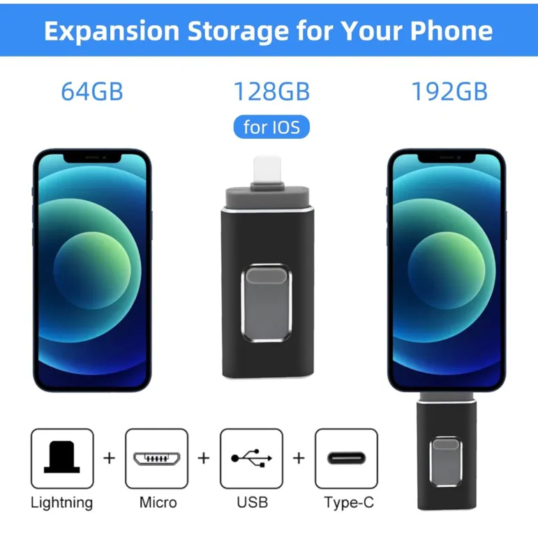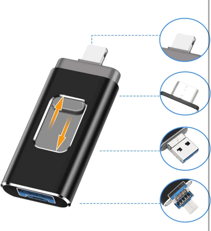 [درایو فلش USB 4 در 1]: عملکرد Type-C/Micro/iOS/USB 4 in 1، انتقال آسان فایل ها بین گوشی های هوشمند. عملکرد با هزینه بالا و کیفیت بالا. برای دستگاه های iPhone / i-OS. / اندروید / کامپیوتر.