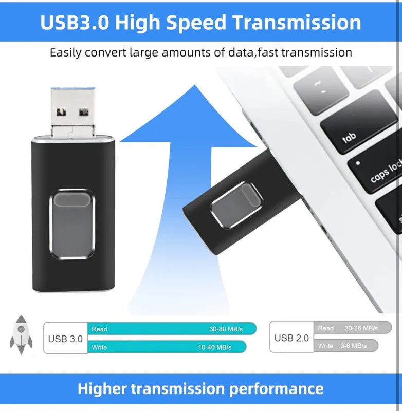 [اشتراک گذاری و انتقال فوری] درایو فلش USB 3.0 تلفن می تواند عکس ها / فیلم ها / فایل ها را فوراً از تلفن / تبلت / OTG / Android کپی یا جابجا کند. بدون پشتیبان گیری از سرویس ابری، می تواند مستقیماً عکس ها، فیلم ها، موسیقی، فایل ها را در شبکه های اجتماعی، فیس