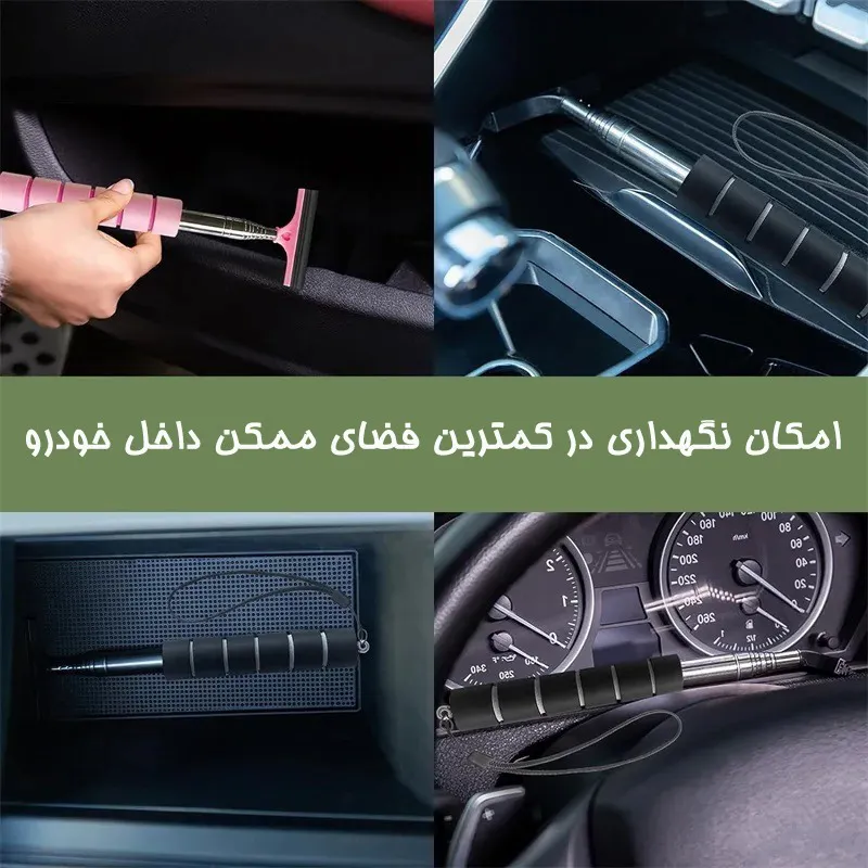 مینی تیغه شیشه پاکن ماشین ، ابزار جدید و کاربردی در عین سادگی است . این محصول یک تیغه 6.8 سانتی متری می باشد که شبیه به تیغه های برف پاکن معمول خودرو است ، بنابراین به سادگی می تواند سطح شیشه و آینه را تمیز کند . اما خصوصیتی که بیش از هر چیزی در این کالا خود نمایی می کند و وجه تمایز آن محسوب می شود ، دسته تعبیه شده در زیر تیغه است که با استفاده از یک روکش نرم و لطیف برای راحتی دست پوشش داده شده ، این دسته قابلیت افزایش طول تا 1 متر را دارد ، بنابراین می توانید با استفاده از آن شیشه و آینه در فاصله یک متری را تمیز کنید ، مانند آینه بقل سمت مخالف خود به هنگام حضور داخل خودرو بدون اینکه نیازی به پیاده شدن و سوار شدن های مکرر باشد . ابعاد و حجم کم کالا ویژگی دیگر آن به شمار می رود که امکان نگهداری از محصول داخل خودرو در کمترین فضای ممکن برای دسترسی آسان را فراهم آورده .