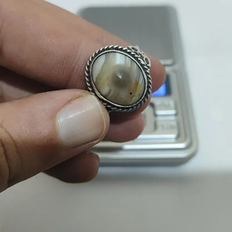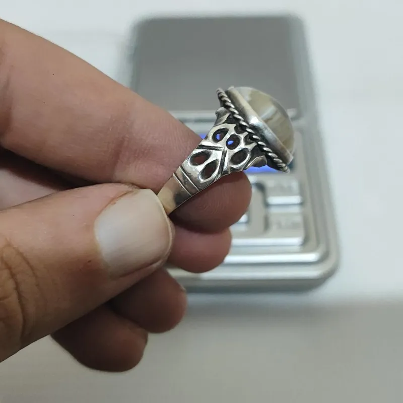 انگشتر نقره 925 نگین چشم معدنی وزن 6.3 گرم بسیار زیبا و خوش دست