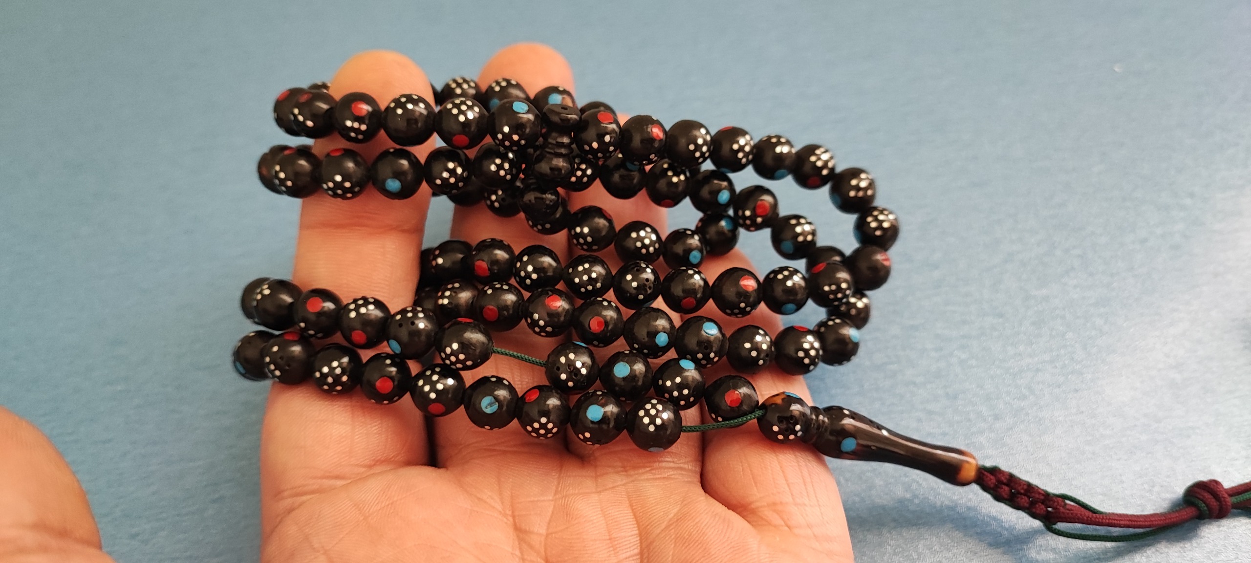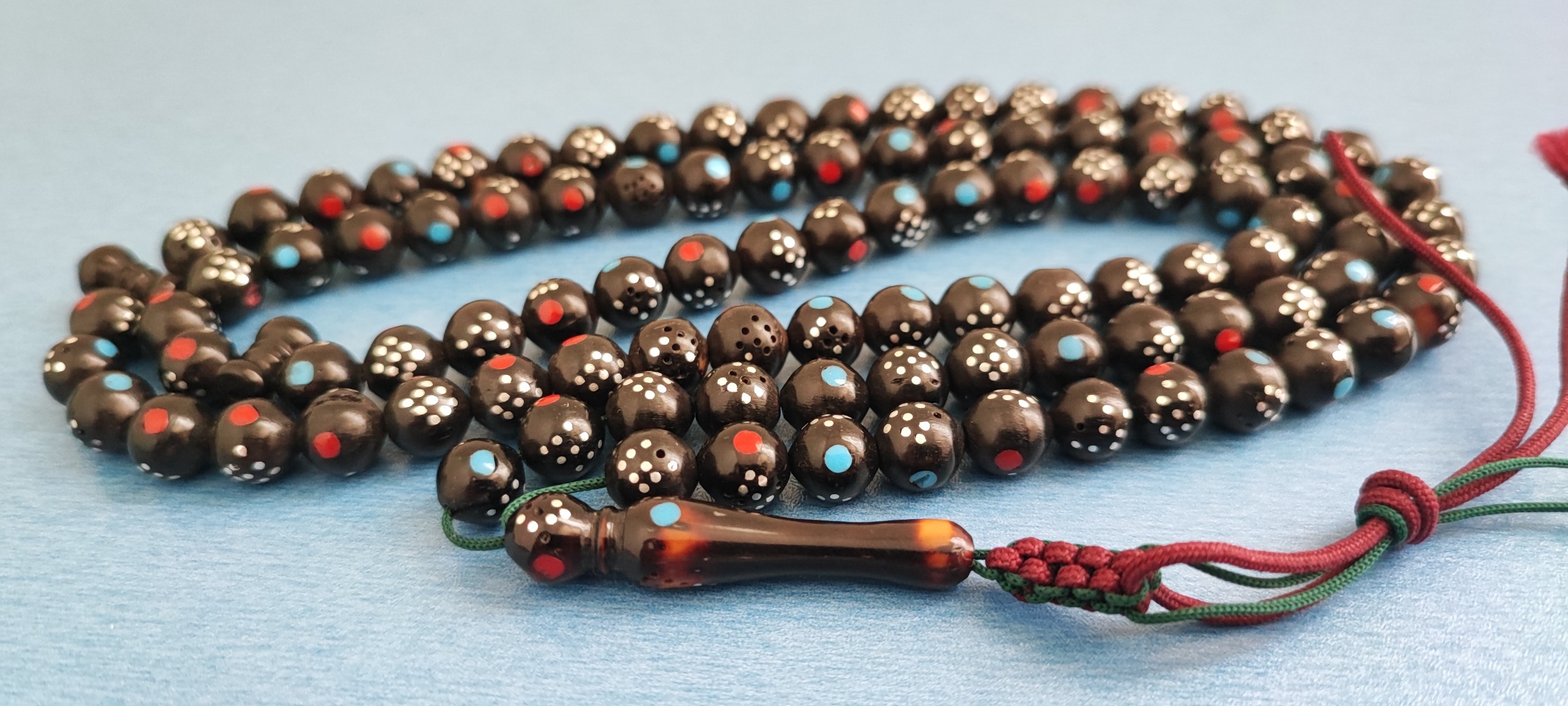 45 سانت طول، 35 گرم وزن، میخدوزی بعضی دانه ها ریخته، زیبا و کلکسیونی