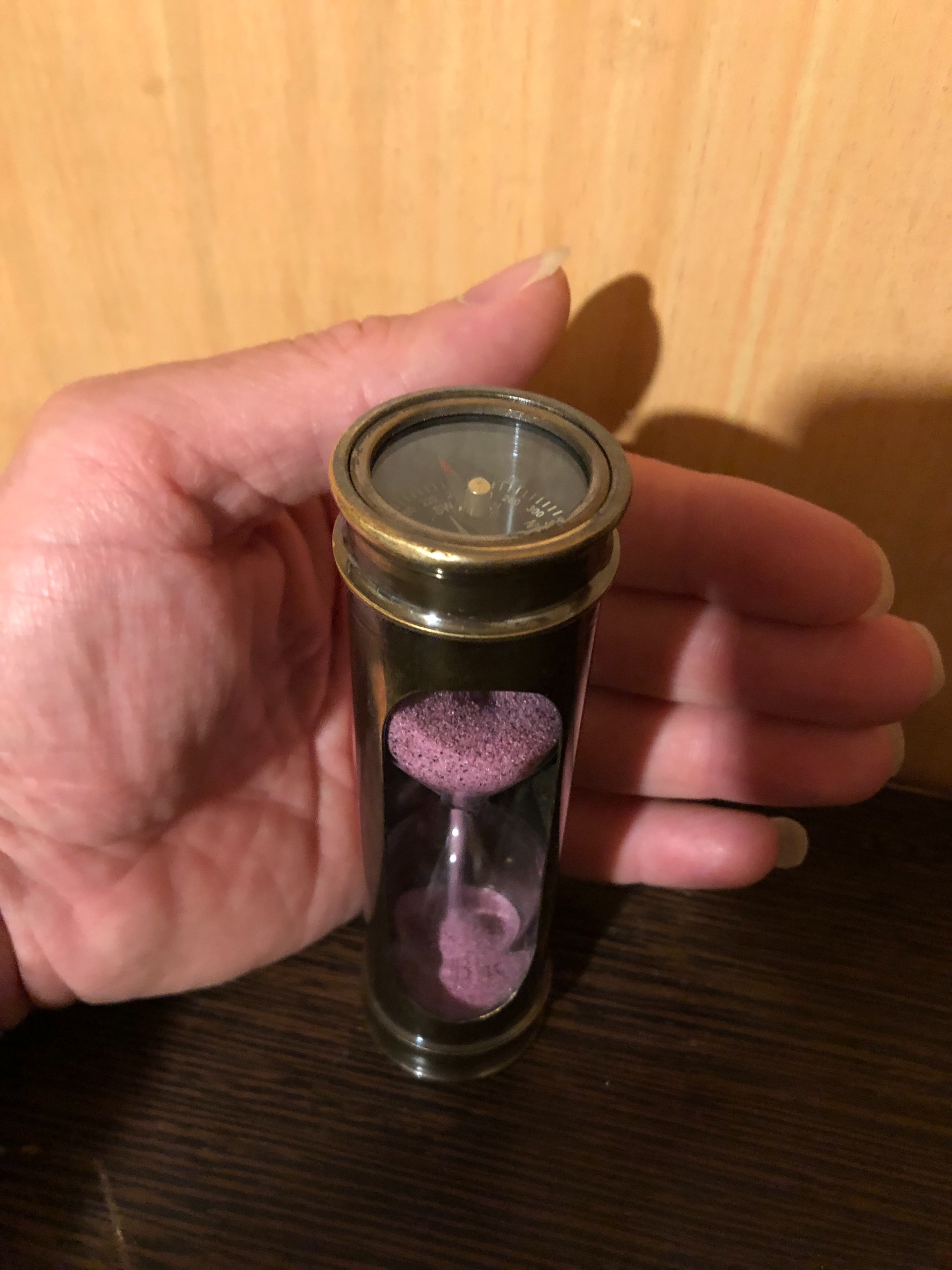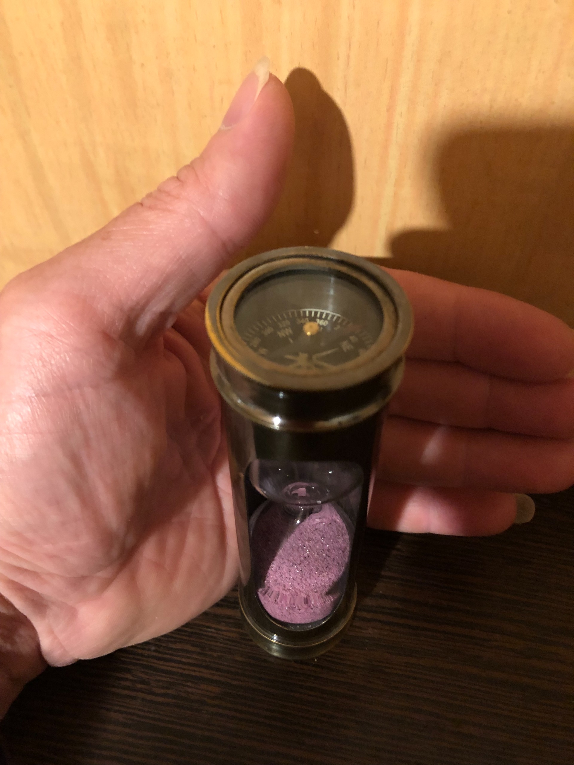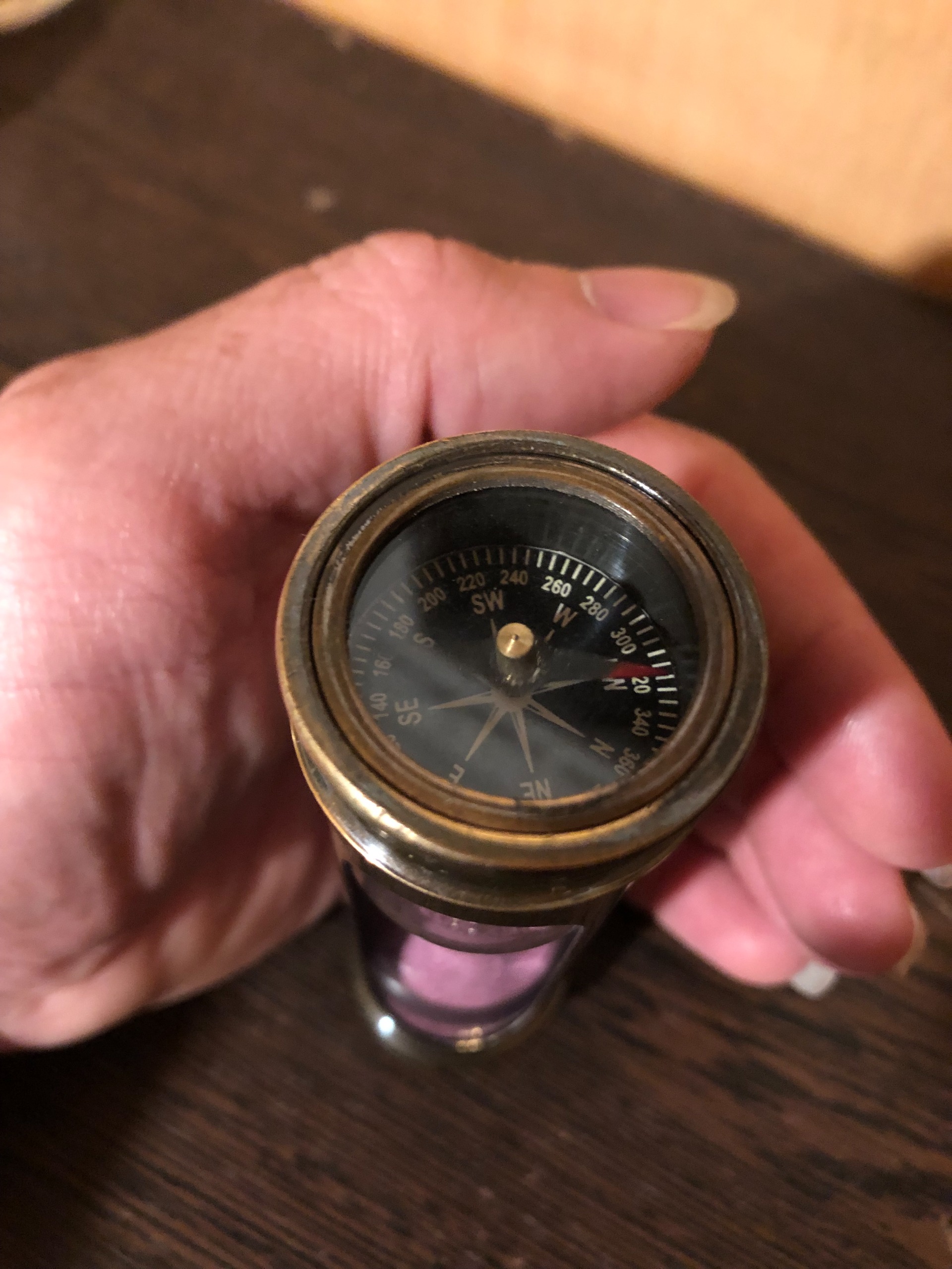 ساعت شنی برنزی دو سر ساعت شنی قطبنما دارد.