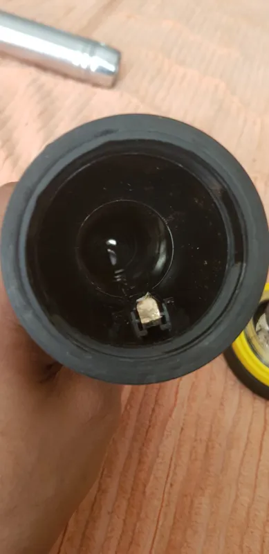 سری جلویی چراغ قوه در اثر جا موندن باتری داخلش زنگ زد و اکسید شده و رسانایی با باتری ایجاد نمیشود