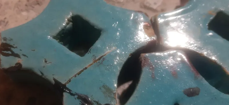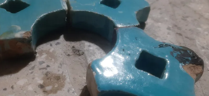 3عدد کاشی حیاطی بسیار قدیمی لعاب فیروزه داخل عکس ها قیر روی بعضی هاش مالیده قابل پاک شدنه قیمت برا 3تا