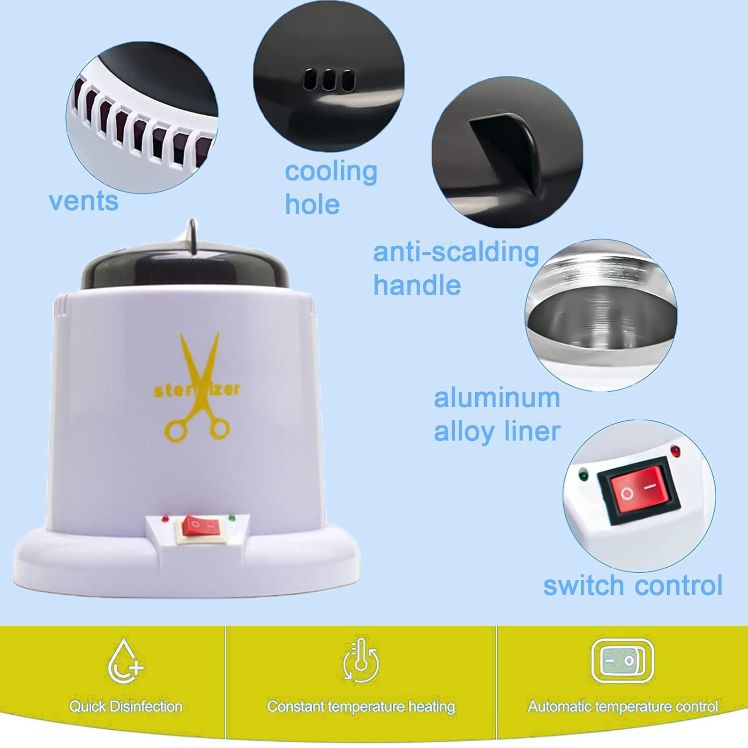 استریل کننده کاربردی: ظرف استریل کننده میتواند اکثر ابزارهای فلزی مانند ناخنگیر، موچین، قیچی کوتاه کردن مو و ابزار پدیکور، ابزار زیبایی ابرو و سوزنها را به طور کامل، یکنواخت، سریع و کارآمد استریل کند. میتوانید مطمئن باشید که ابزارهای زیبایی شخصی و ابزارهای