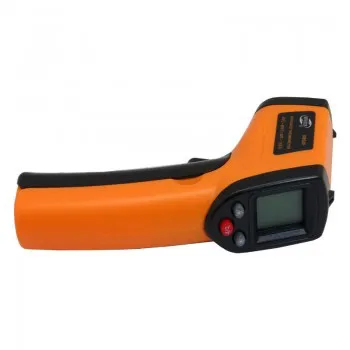 ترمومتر لیزری یک ترمومتر لیزری تفنگی برای اندازه گیری دما از فاصله دور می باشد. اصولا اندازه گیری دما بدون تماس در بسیاری از موارد با توجه به شرایط و محیط مورد نیاز است. این ویژگی موجب می شود با ایجاد تمهیدات دمایی از آسیب های وارده به تجهیزات و ابزارآلات جلوگیری کنیم. دمای بیشتر از حد تحمل و یا سرمای بیش از حد قطعا برای کار هر وسیله ای می تواند ایجاد مشکل کند.این گونه ترمومترها به صورت پرتابل هستند و برای اندازه گیری دما در کاربردهای مختلف مانند صنعت تولید رنگ، صنایع مختلف برق و الکترونیک، تولید مواد شیمیایی و پتروشیمی و غیره به کار می رود.در ساخت این ترمومترلیزری محصول BENETECH از سنسورهای مادون قرمز استفاده می شود.نحوه ی کار این محصول بدین صورت است که با تاباندن لیزر به نقطه ی مورد نظر دمای محاسبه شده توسط صفحه نمایش قابل مشاهده است. فرایند علمی این محاسبه بدین صورت است که هر شیئی دارای مولکول های در حال لرزش می باشد، این لرزش منجر به انتشار انرژی به صورت مادون قرمز می شود. هرچه دمای شئی بیشتر باشد این مولکول ها لرزش و به طبع انتشار مادون قرمز بیشتری دارند. دماسنج لیزری این انتشار امواج مادون قرمز را دریافت و به سیگنال های الکتریکی تبدیل می کند و در نهایت درجه حرارت محاسبه می شود.