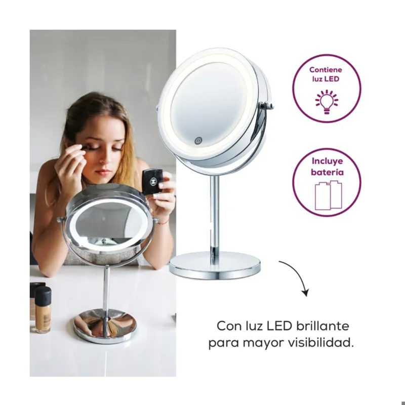 این آینه دارای قابلیت چرخش 360 درجه است که روال آرایش شما را ساده میکند، در حالی که بزرگنمایی 5 برابری آن به شما امکان میدهد تمام جزئیات چشمها و مژههای خود را ببینید. این آینه که مجهز به 18 چراغ LED و یک حسگر لمسی است، میتوانید به راحتی سطح نور را در حین