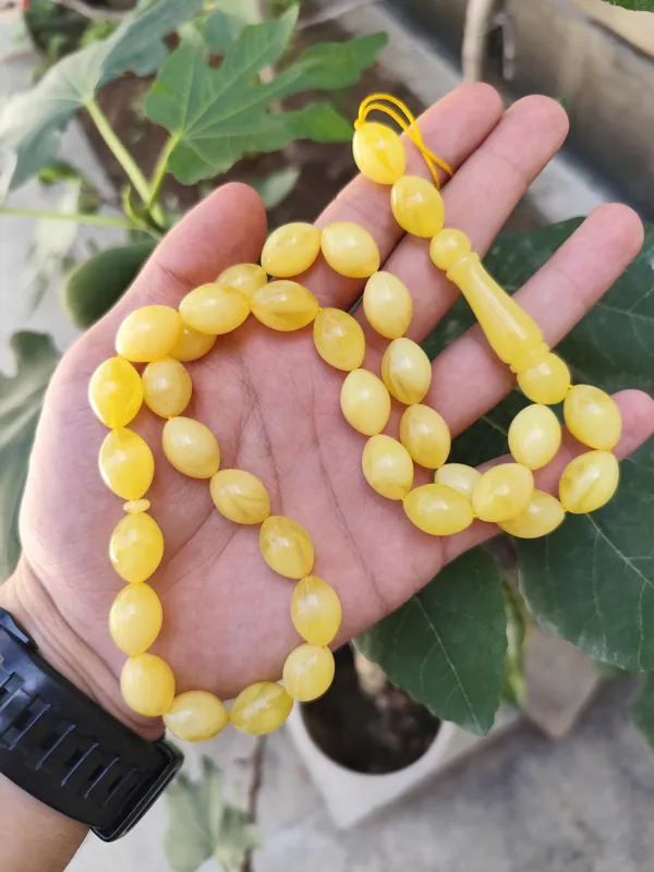 سلام تسبیح کهربا ترک 33دانه استاد تراش زیبا درجه یک خوش رنگ و خوش دست