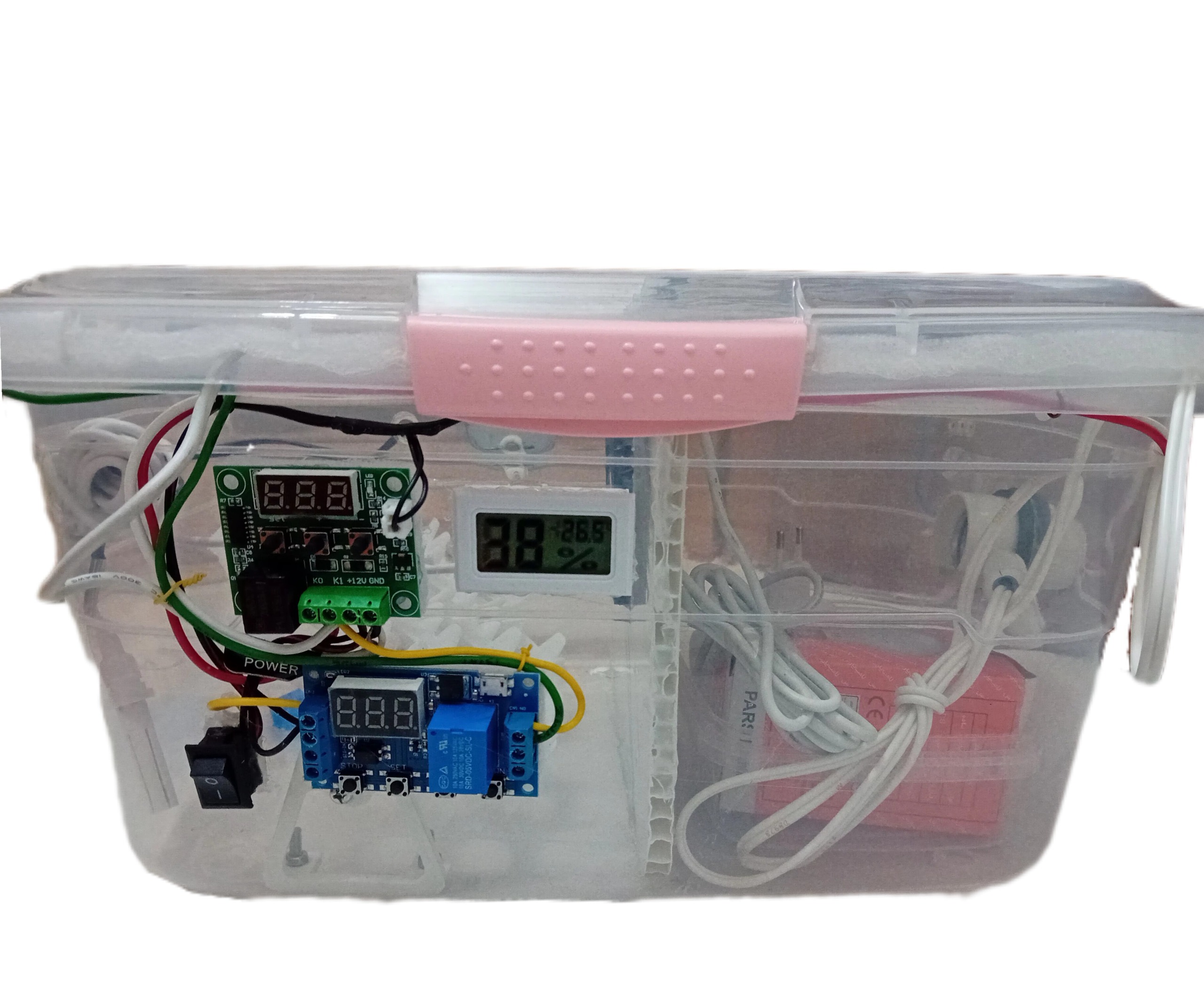 دما اتومات و دارای رطوبت سنج و ترموستات و تایمر و موتور سنکرون و فن پخش هوا و اداپتور قوی و ظرف آب وسیم بلند و لامپ و سرپیچ و دوشاخه و بدنه محکم