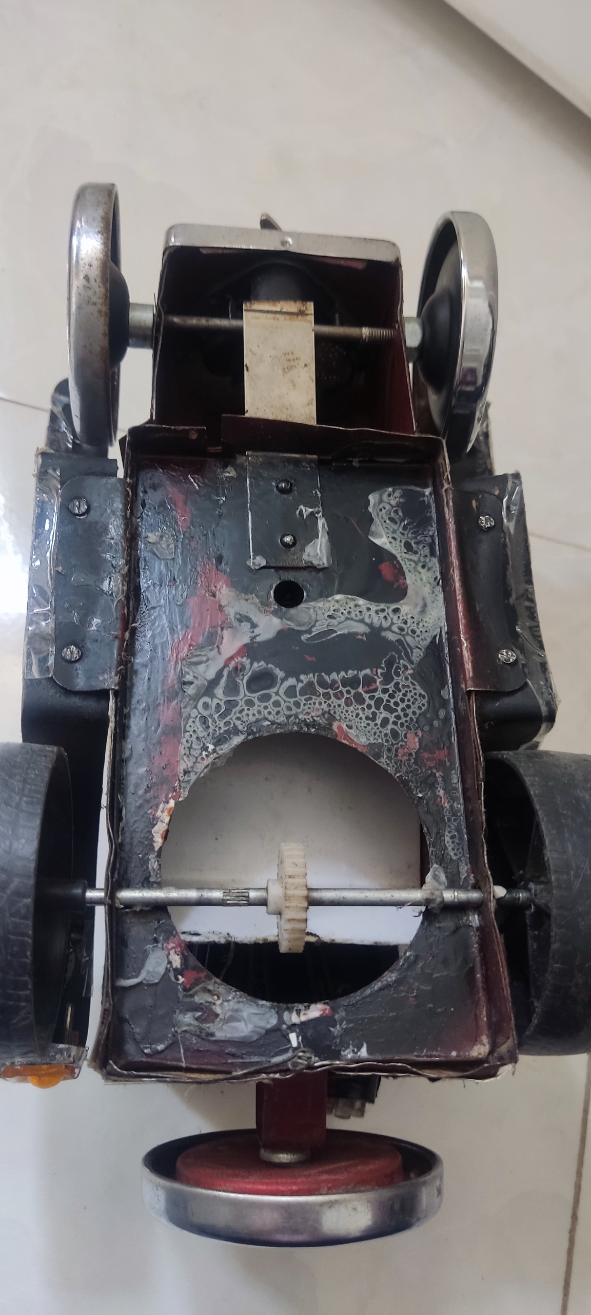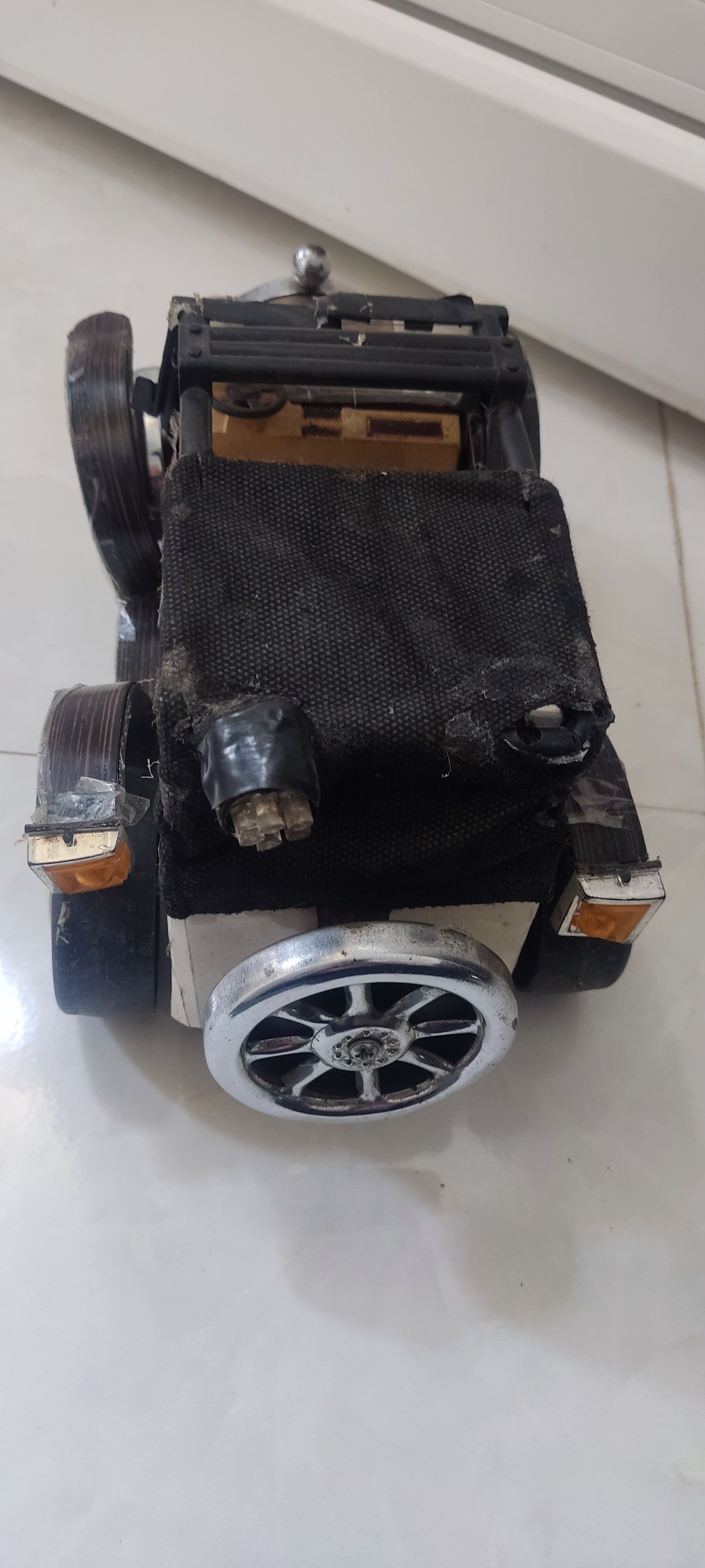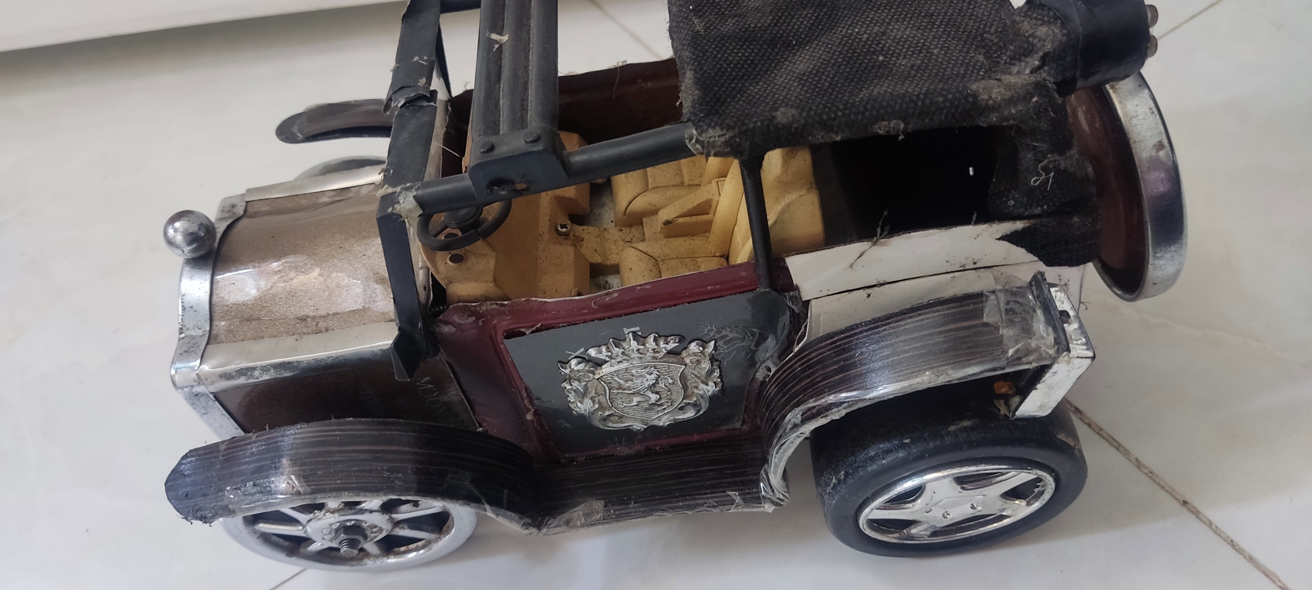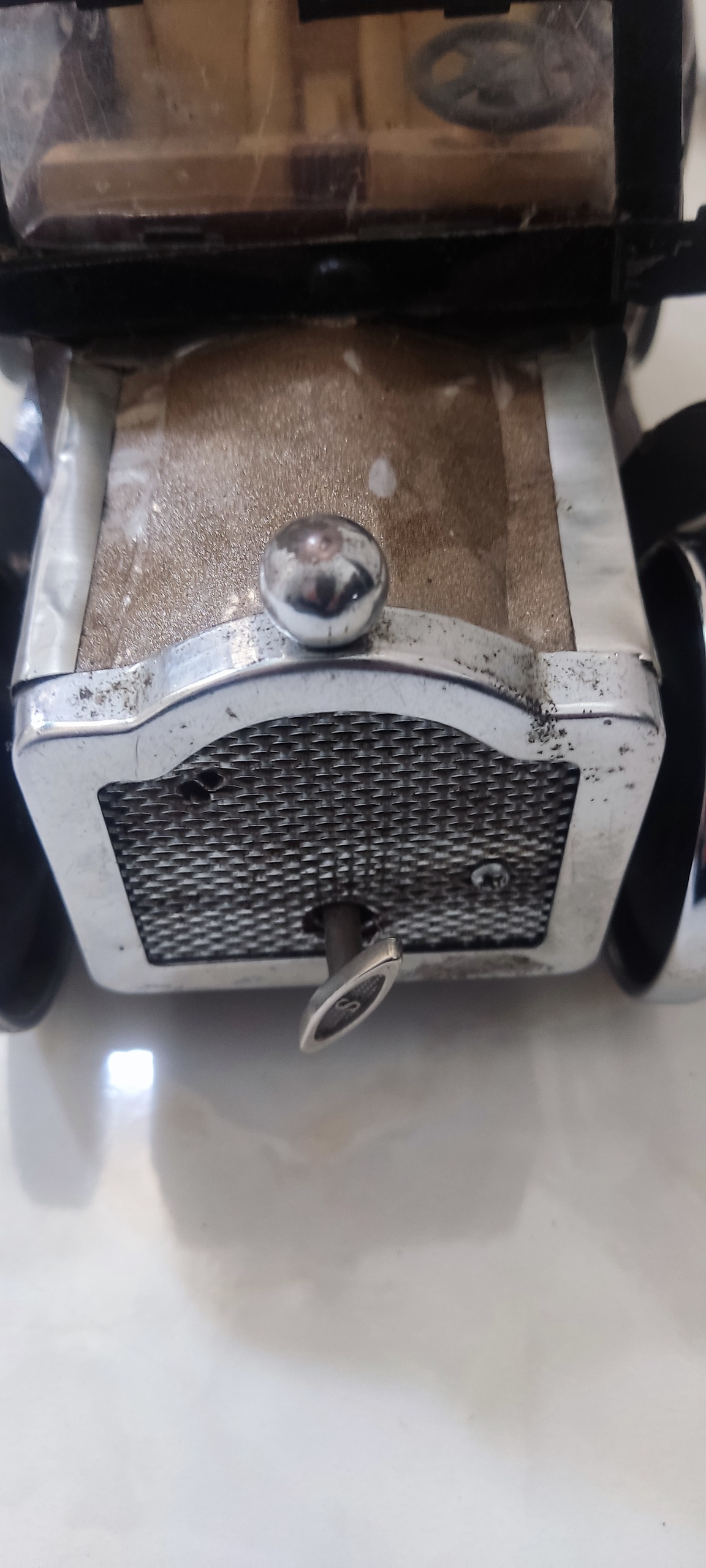 ماشین فلزی قدیمی برابر تصاویر تمام فلز فقط چرخهای عقب تعویض شده و پلاستیک هست ماشین زیبا و کلکسیونی هست فقط نیاز به تمیزکاری و کمی بازسازی داره دستگیره جلو هم بچرخانید دستگاه موزیکال قدیمی روش نصب شده که موزیک بسیار زیبا و آرام بخشی پخش میکنه به تصاویر با دقت نگاه کنید و درصورت تمایل خرید کنید طول بازاپاس حدود 27 سانت مدل ماشین هم پاژن انتخاب کردم