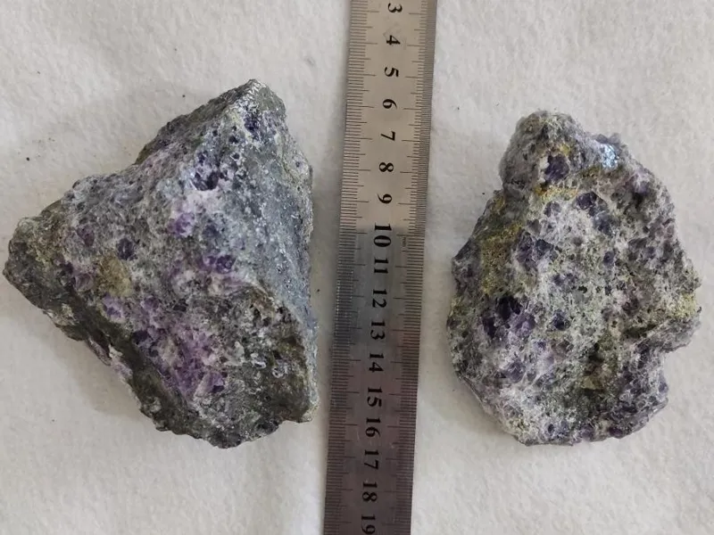 دو کلوخه بلورهای فلوریت بنفش فوق العاده زیبا