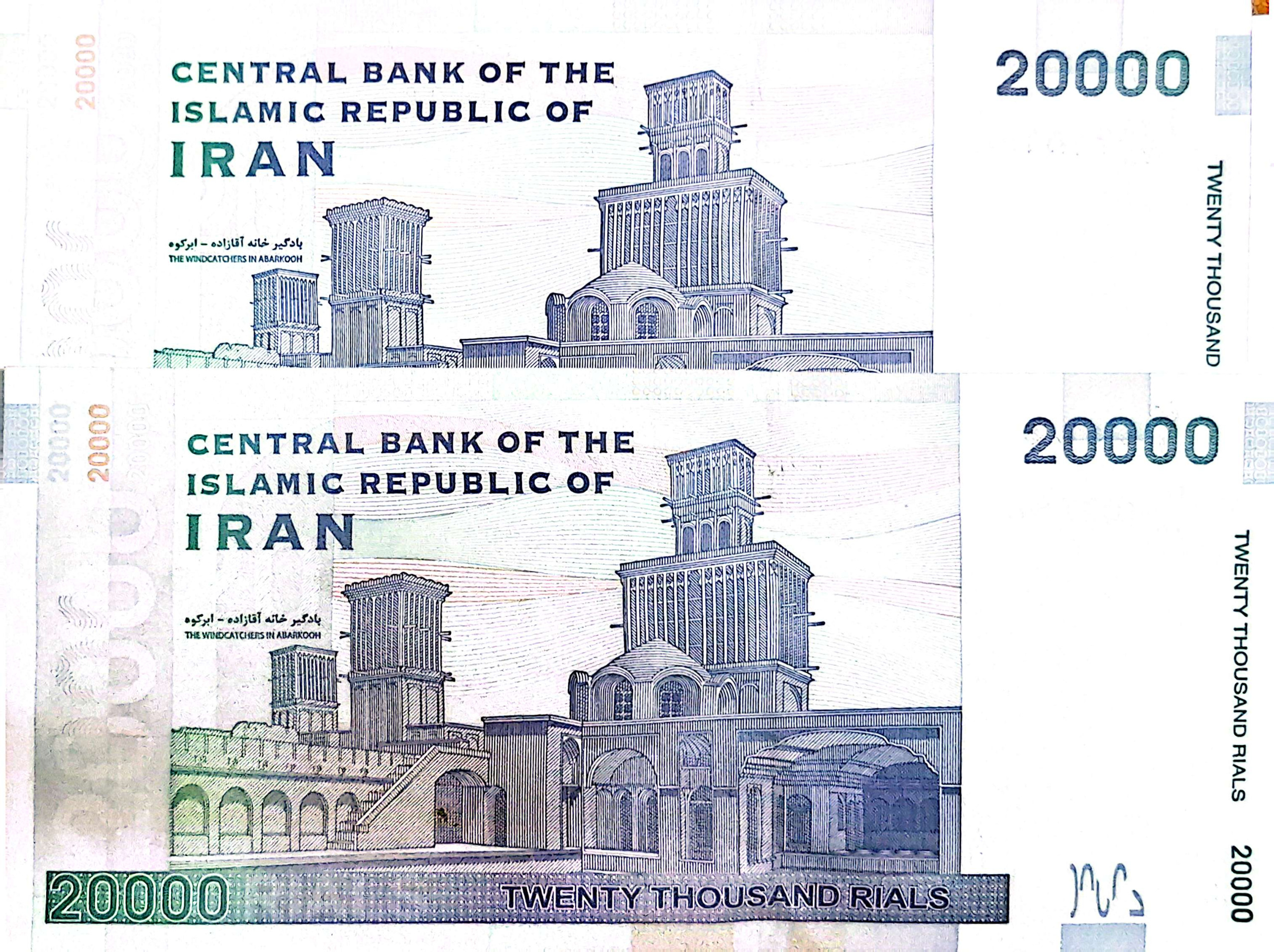 2 برگ اسکناس 20000 ریالی پشت بادگیر