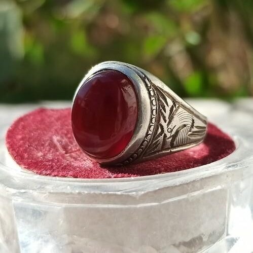 انگشتر عقیق سرخ دستساز کهنه و قدیمی