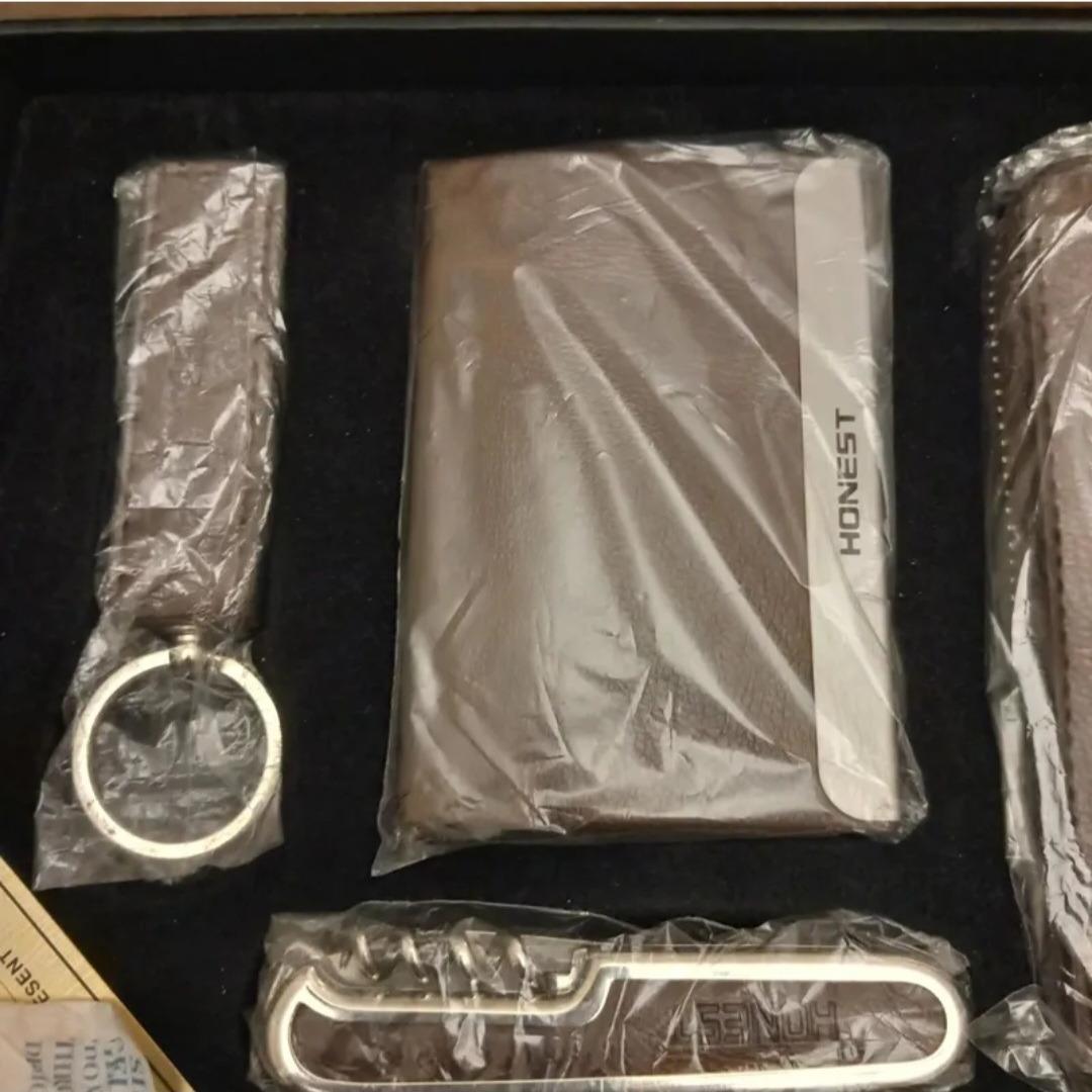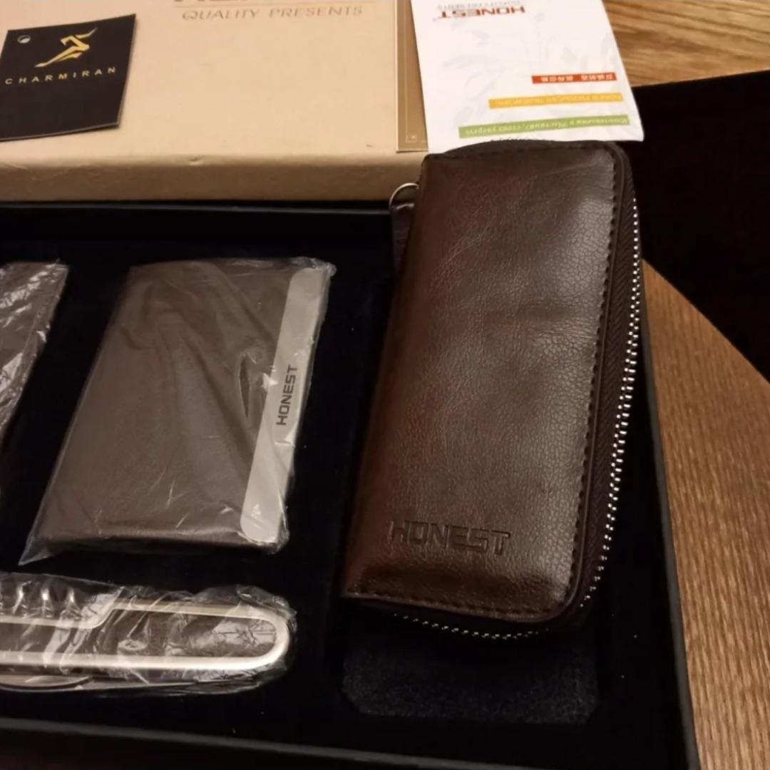 ست چرمی ارزشمند و بسیار شیک Hunest/ شامل کیف، جاسوئیچی، چاقو چند کاره و ناخنگیر/