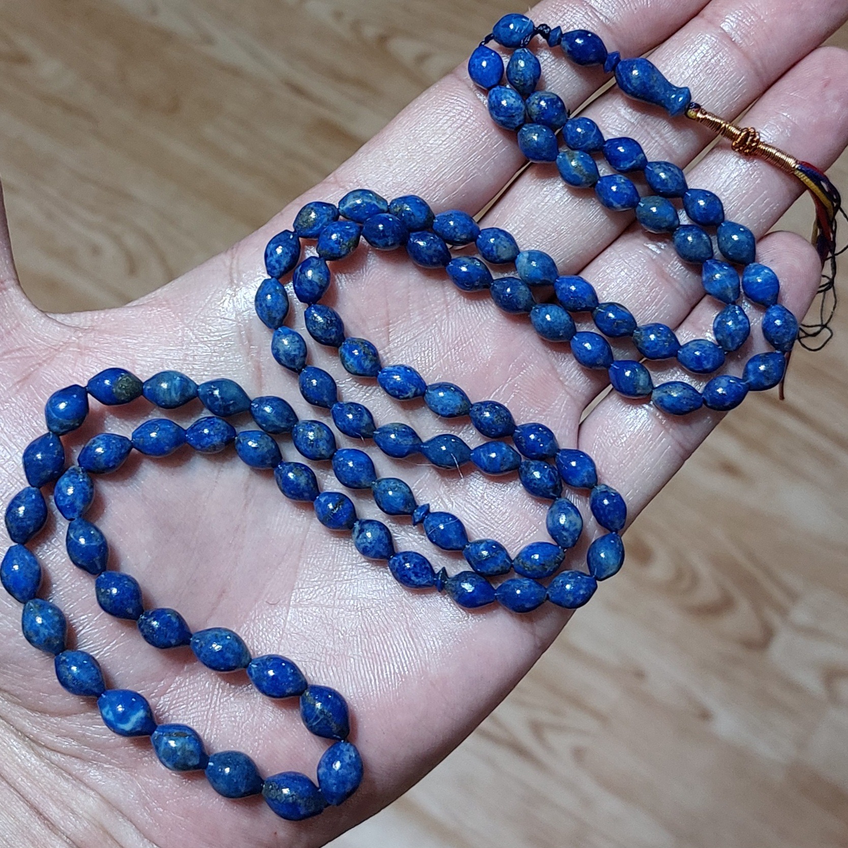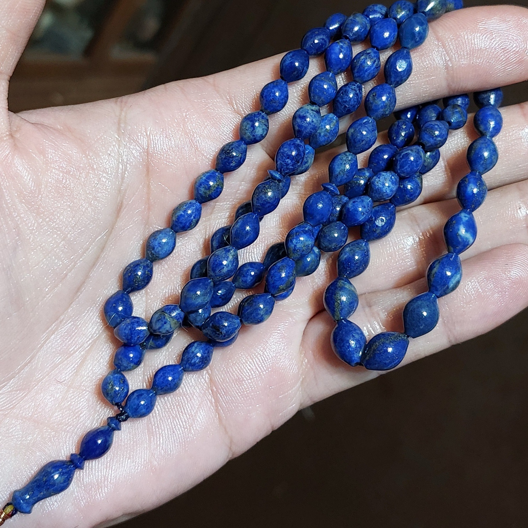 تسبیح معدنی لاجورد افغانستان،تمام تراش دست،معدن بدخشان،ریز به درشت گندمی،قواره بزرگ و سنگین دقت کنید تسبیح قواره بزرگ هست