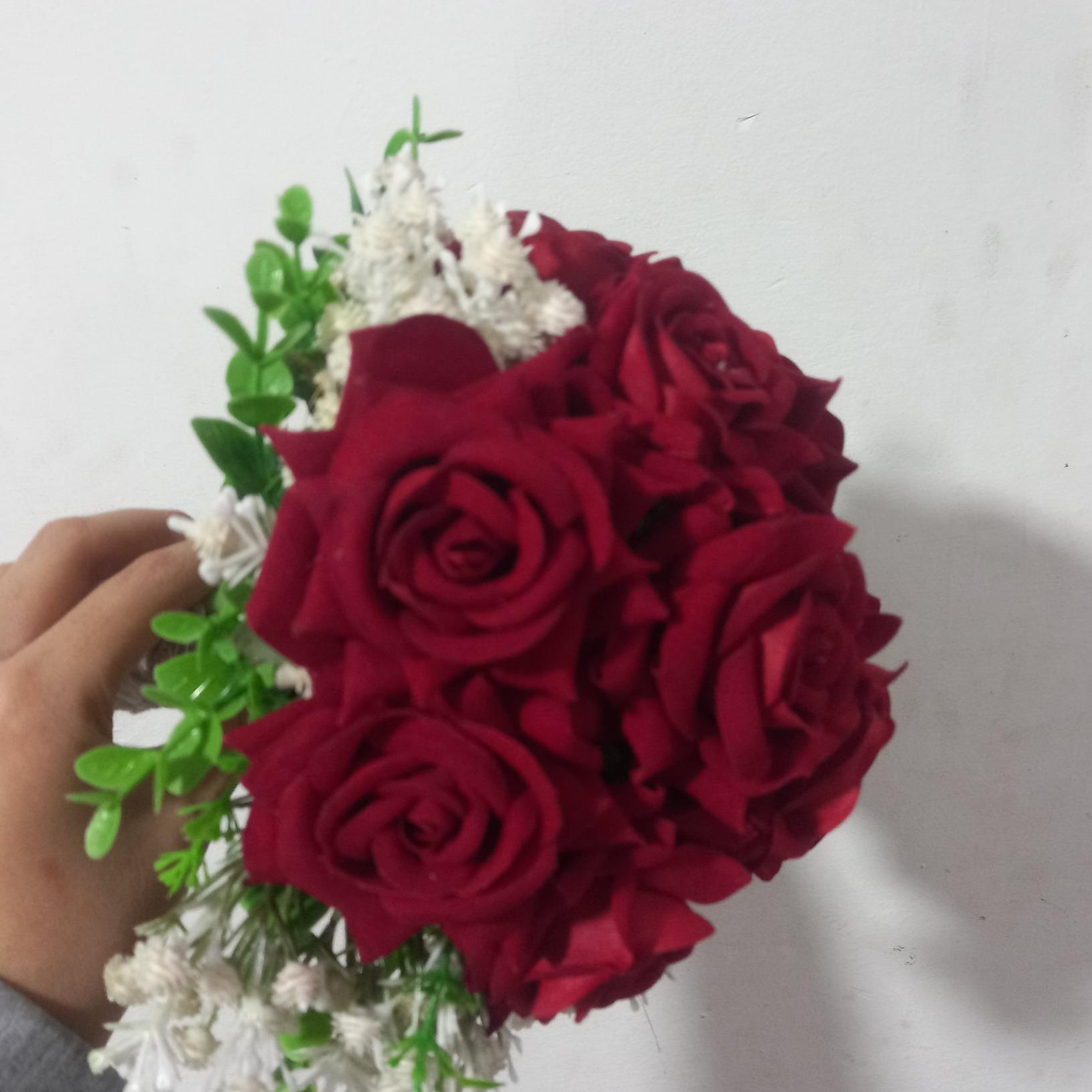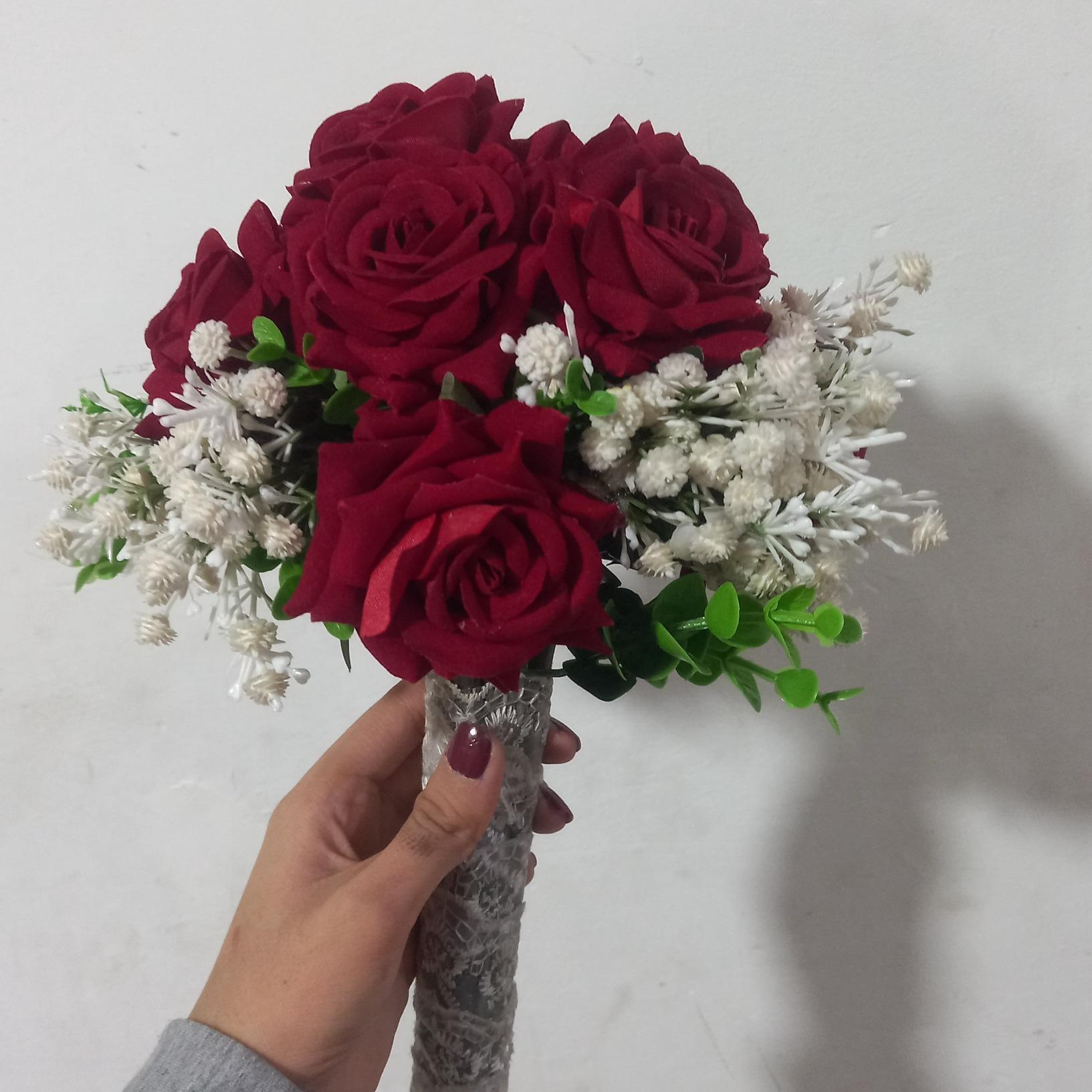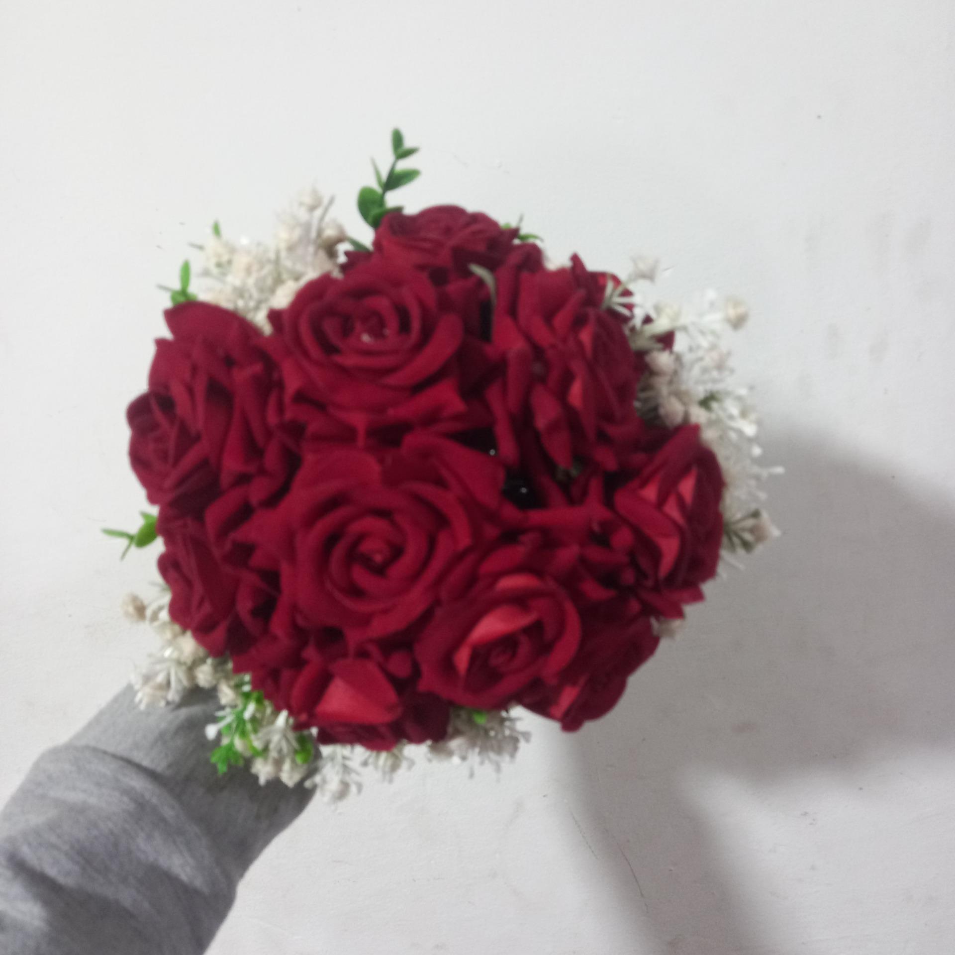 دسته گل عروس رز قرمز بسیار زیبا