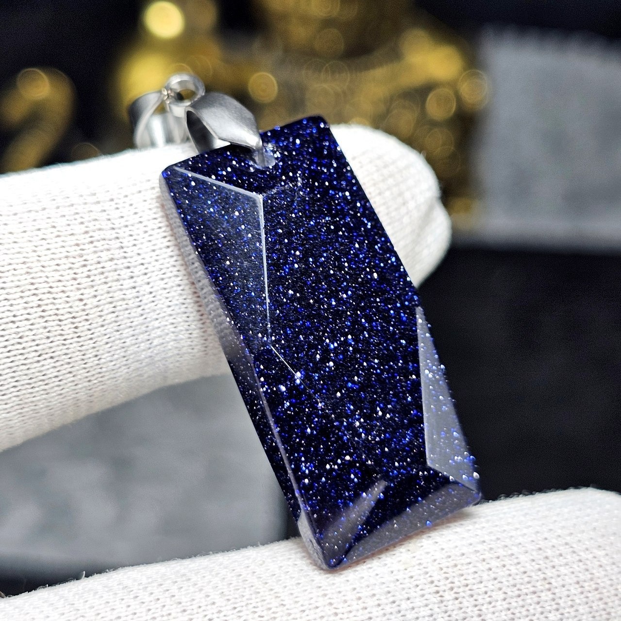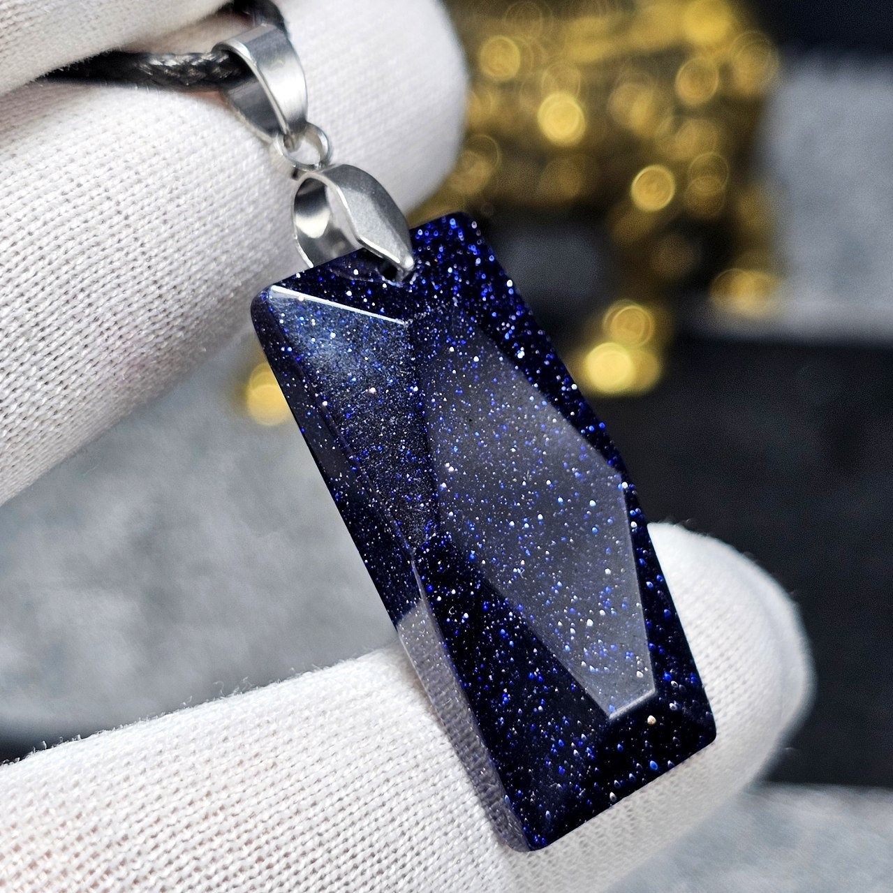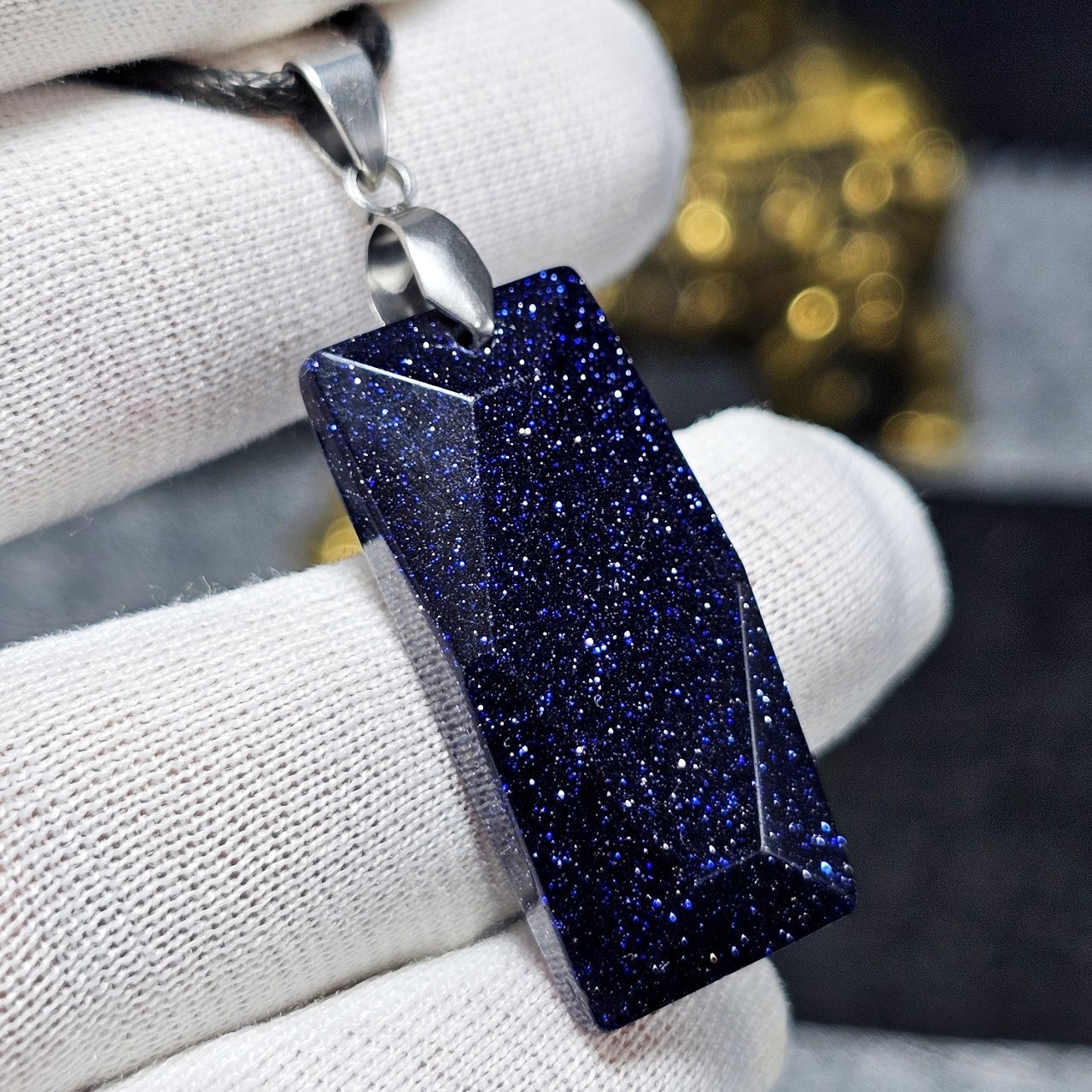 آویز گردنبند سنگ دلربای سرمه ای شمش کد 35104