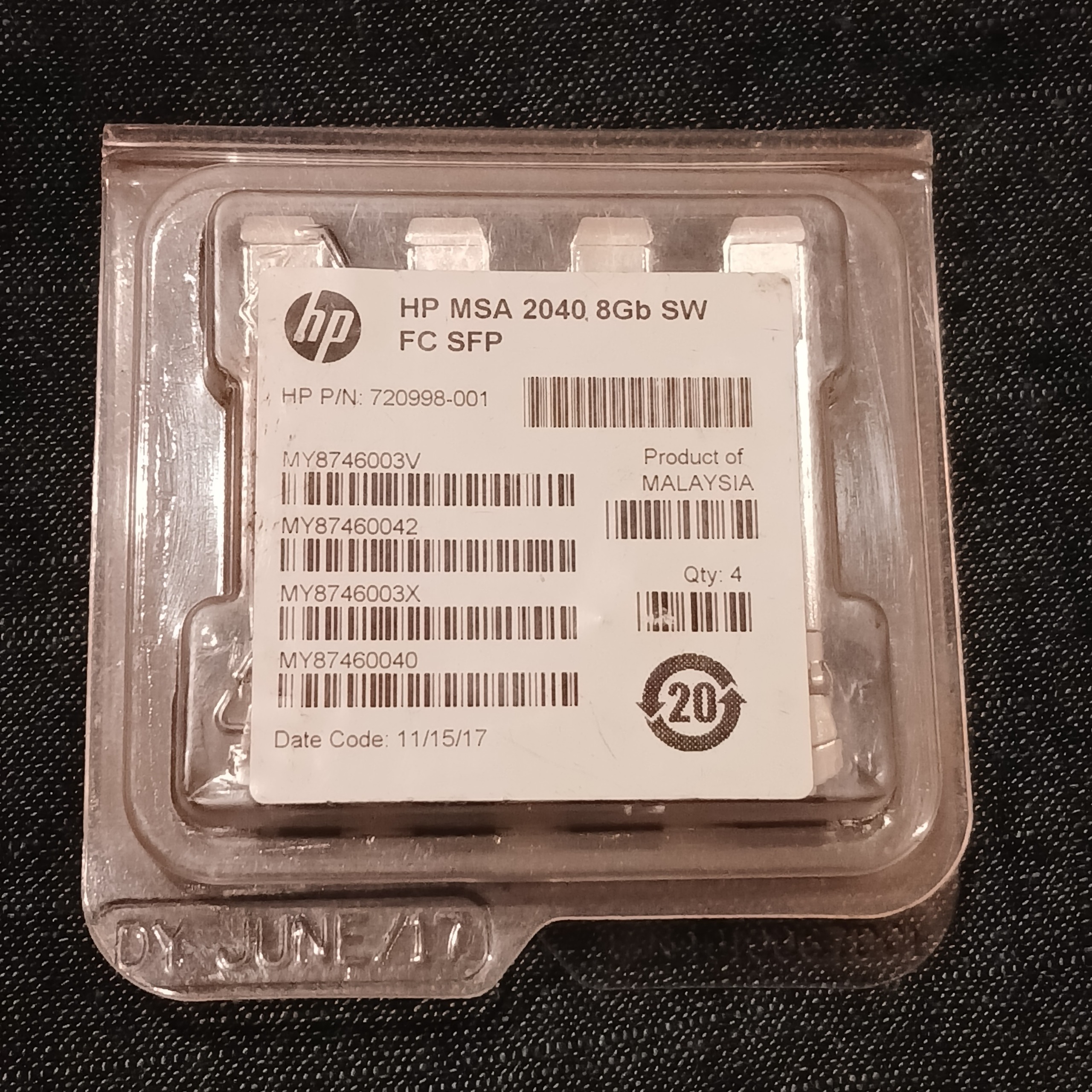 این یک ماژول فیبر نوری نوع SFP برای ارتباط Fibre Channel است که در سیستمهای ذخیرهسازی حرفهای مانند HP MSA 2040 Storage Array استفاده میشود. SFPها امکان اتصال ماژولار فیبر نوری به سوئیچها، روترها یا ذخیرهسازها را فراهم میکنند.