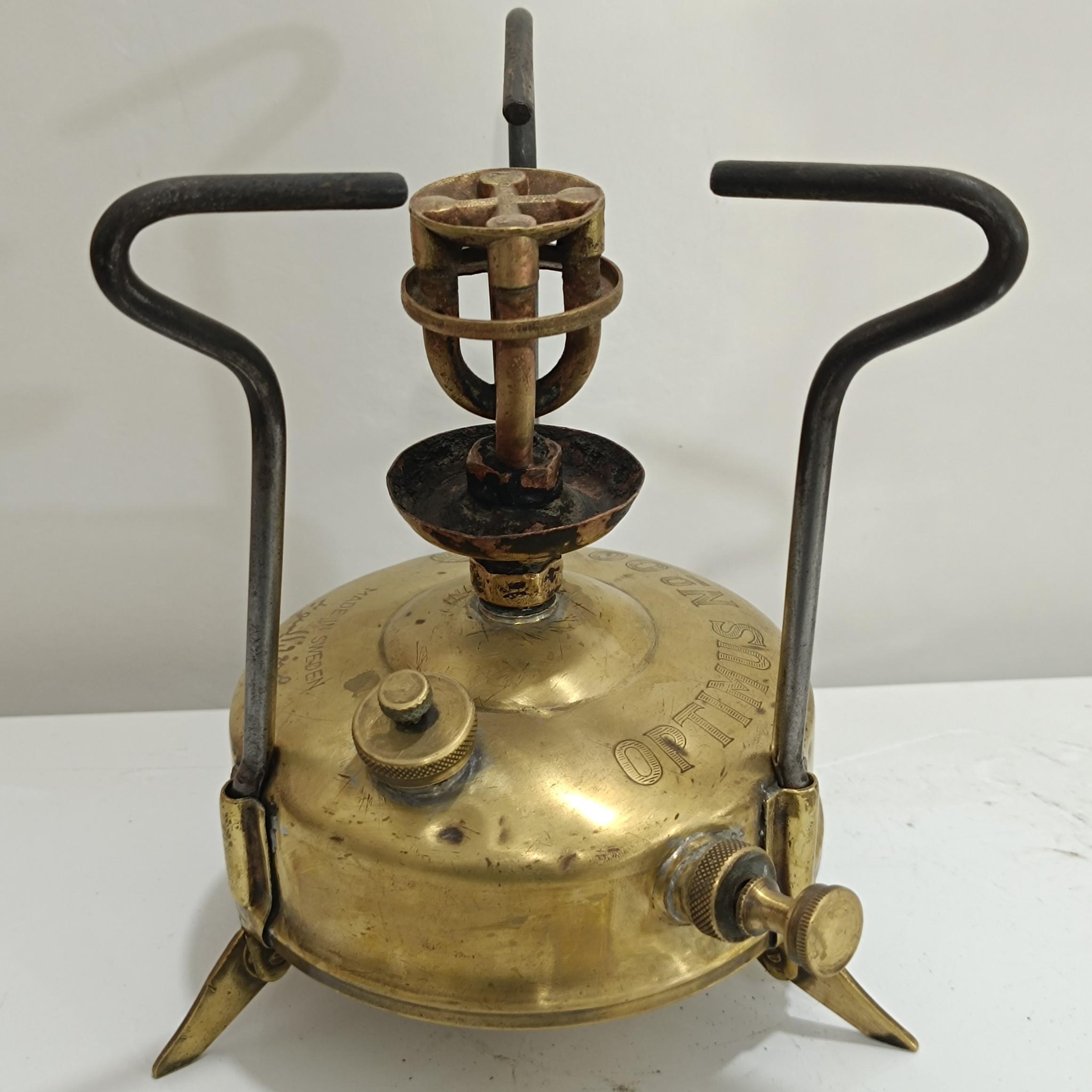 چراغ پریموس پایه تاشو برنجی ساخت سوئد میباشد.سالم و تمیزه به جز ضرب خوردگی جزیی که برای کالای قدیمی طبیعیه ،در عکس مشخصه که چراغ سالم هستش،سایز کوچک بسیار زیبا