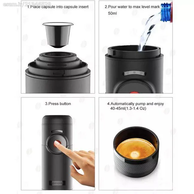 دستگاه اسپرسوساز قابل حمل تمام اتوماتیک ایمنس (IMONS) می تواند آب را گرم کند، این قهوه ساز ایتالیایی برای قهوه آسیاب شده، قابل شارژ 12 ولت، استفاده بی سیم، خود تمیز شونده برای کمپینگ خودرو در داخل و خارج از خانه، پیاده روی ماهیگیری و ... دستگاه اسپرسو قابل