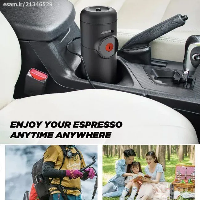 معرفی دستگاه قهوه ساز قابل حمل برای ماشین DC 12V با گرمایش الکتریکی فندکی ماشین و استخراج اسپرسو و موکا. دستگاه اسپرسو 12 ولت یک دستگاه اسپرسو ساز حرفه ای برای نوشیدن اسپرسو در ماشین، با استفاده از برق 12 ولت فندکی است. می توانید در سفر یا