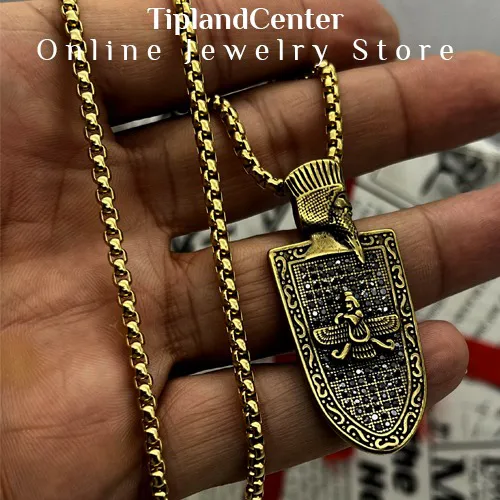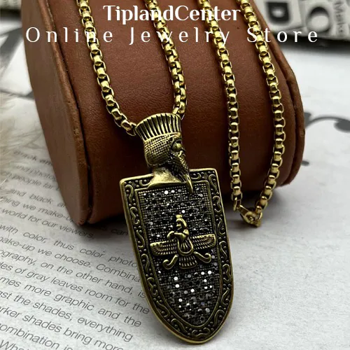 گردنبند فروهر سیاه قلم کاری شده بسیار شیک و زیبا و اصیل که بیانگر اصالت و عظمت ایران کهن میباشد و فوق العاده پر طرفدار میباشد. این پلاک زنجیر فروهر طلایی ساخته شده از استیل عیار 316 با بالاترین کیفیت آبکاری رنگ ثابت و ضد حساسیت میباشد. طول زنجیر این گردنبند 60 سانت از نوع ویتالی که قابل کوتاه شدن میباشد.