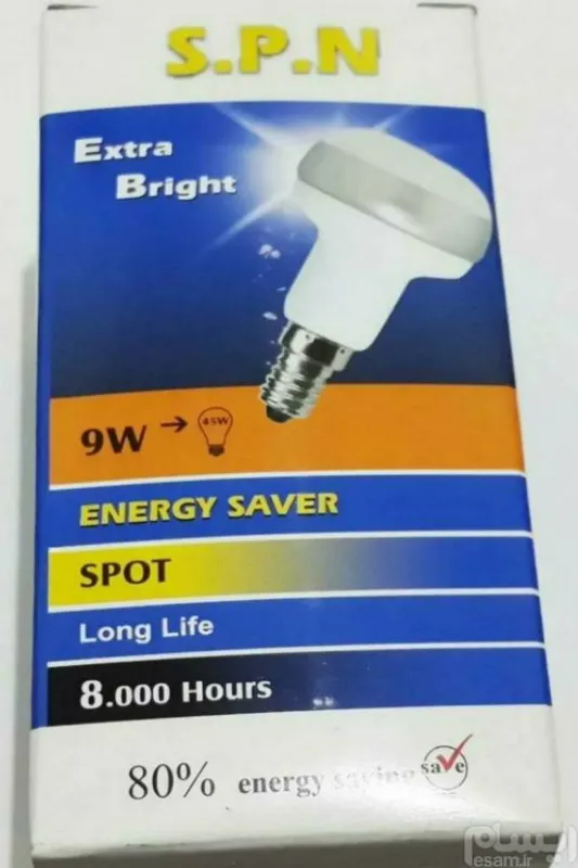مشخصات فنی لامپ کم مصرف 9 وات اس پی ان مدل R50E پایه E14