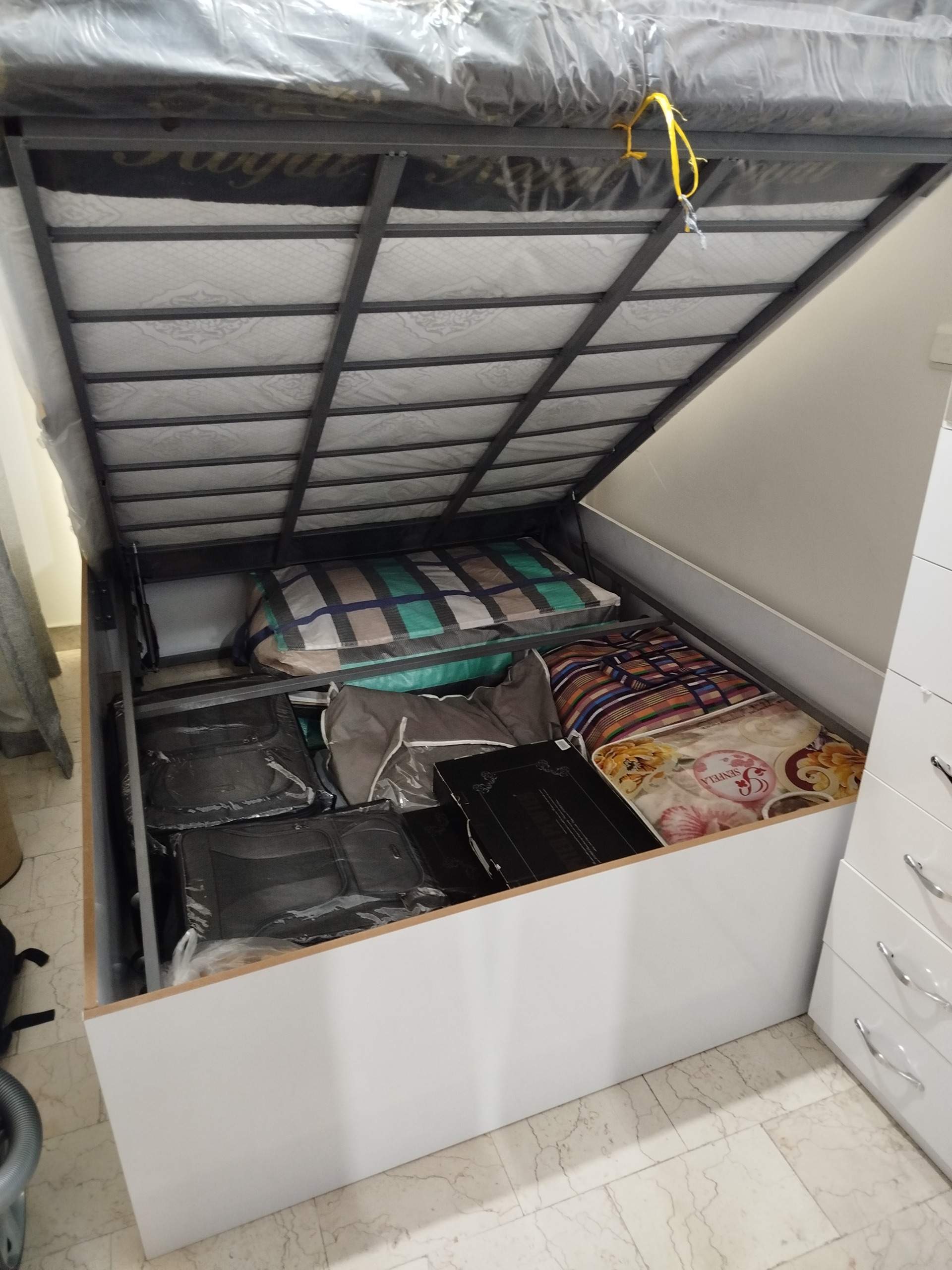تختخواب ام دی آف سفید به همراه کفی جک دار