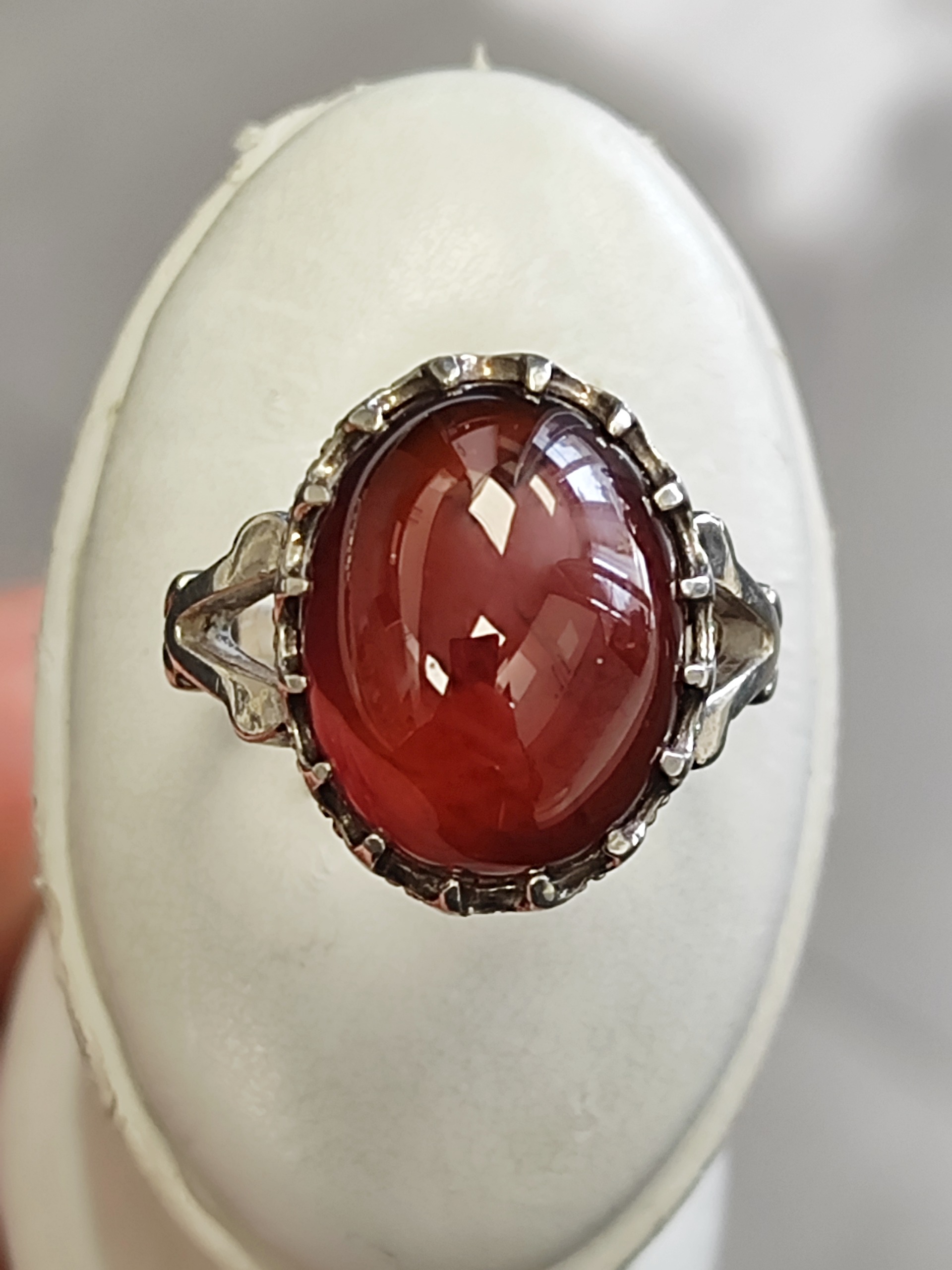 انگشتر گارنت پایروپ طبیعی خوش رنگ به وزن حدودا 15 قیراط رکاب نقره سایز 59