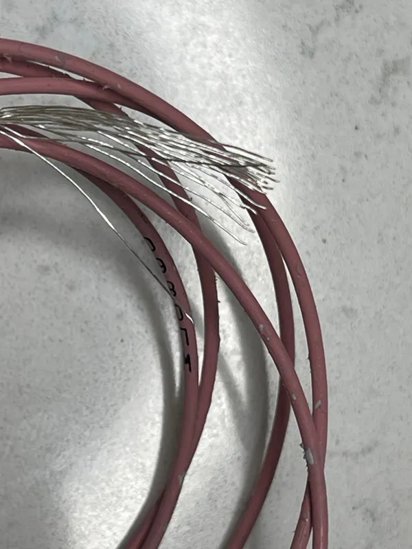 تکه 92 سانتیمتری سیم نقره بسیار بسیار با کیفیت امریکایی دارای دو روکش نسوز که روکش زیرین از جنس کپتن و روکش رویی تفلن میباشد