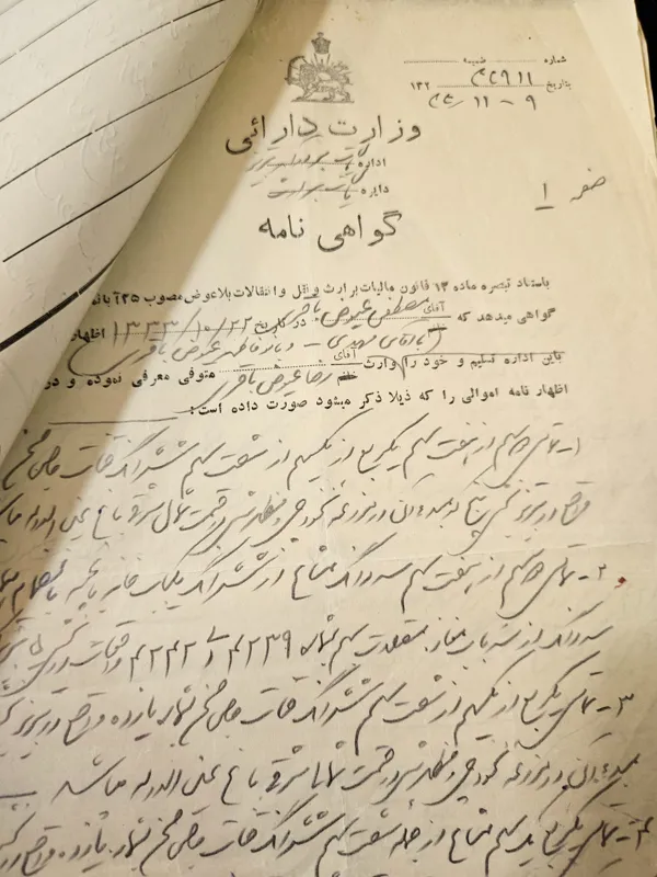 3 برگ سند تمبردار گواهی حصر و وراثت سال 1334