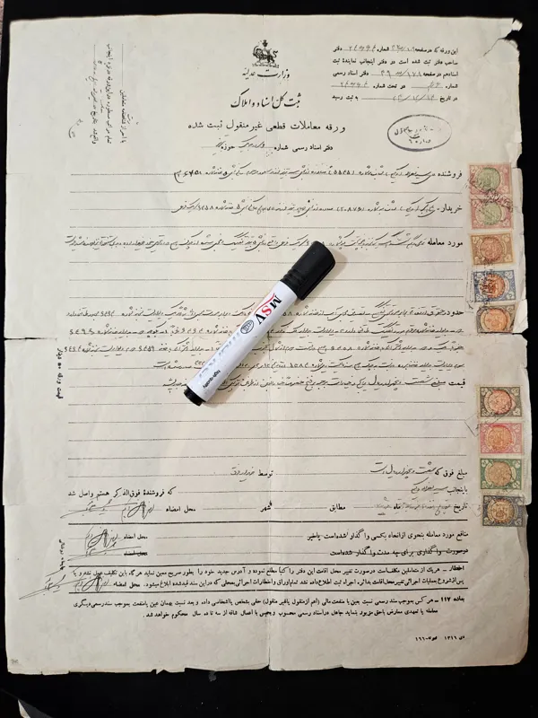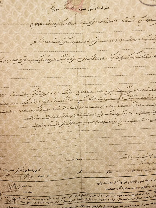 سند قطعی غیر منقول سال 1323 کاغذ فیلیگران دار