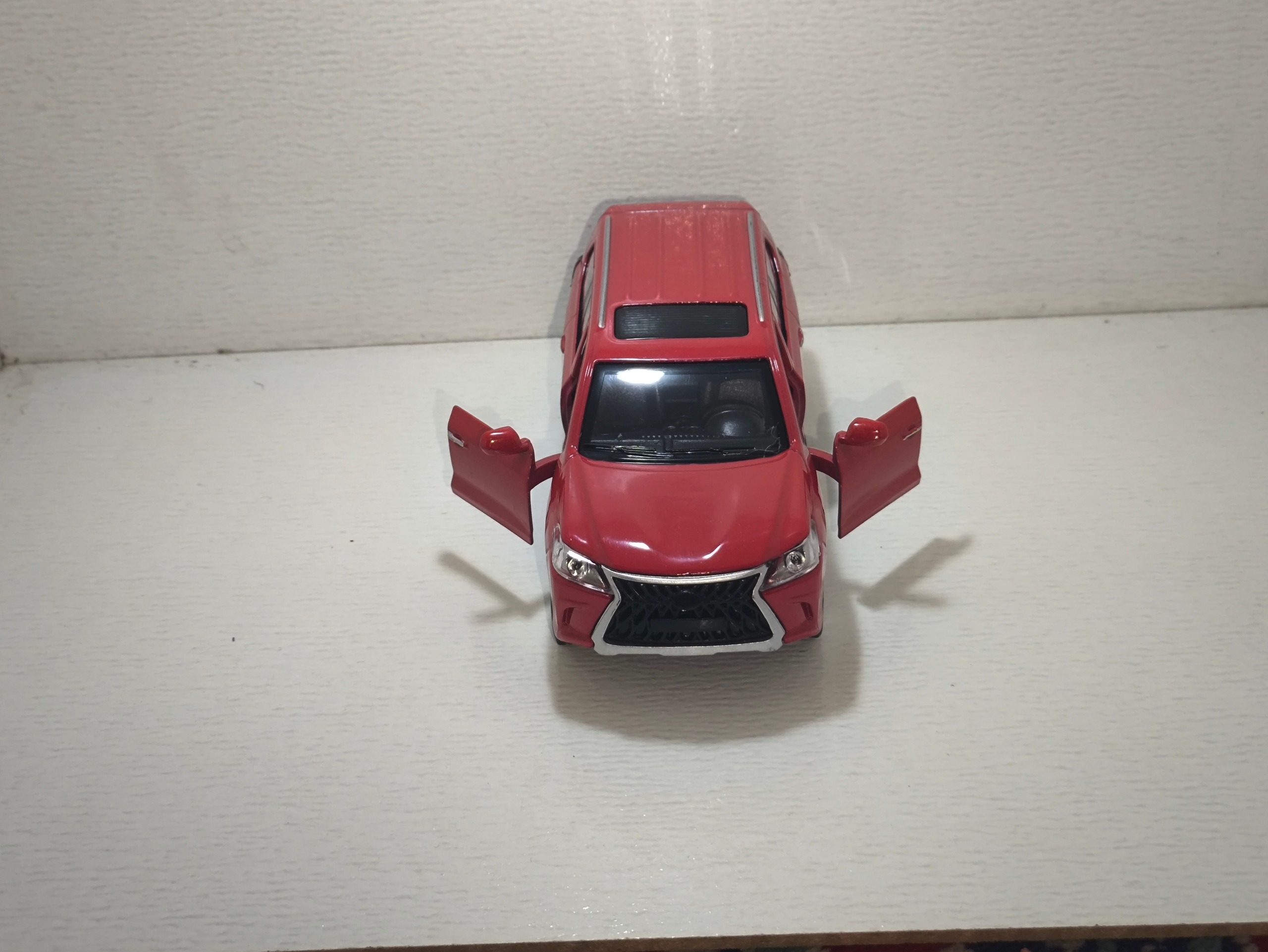 ماکت ماشین فلزی لکسوس LX570 موزیکال و چراغدار و عقب کش قدرتی، رنگ قرمز، دو درب جلو بازشو، کیفیت فوق العاده است و جزئیات داخلی ماشین به خوبی رعایت شده است.
