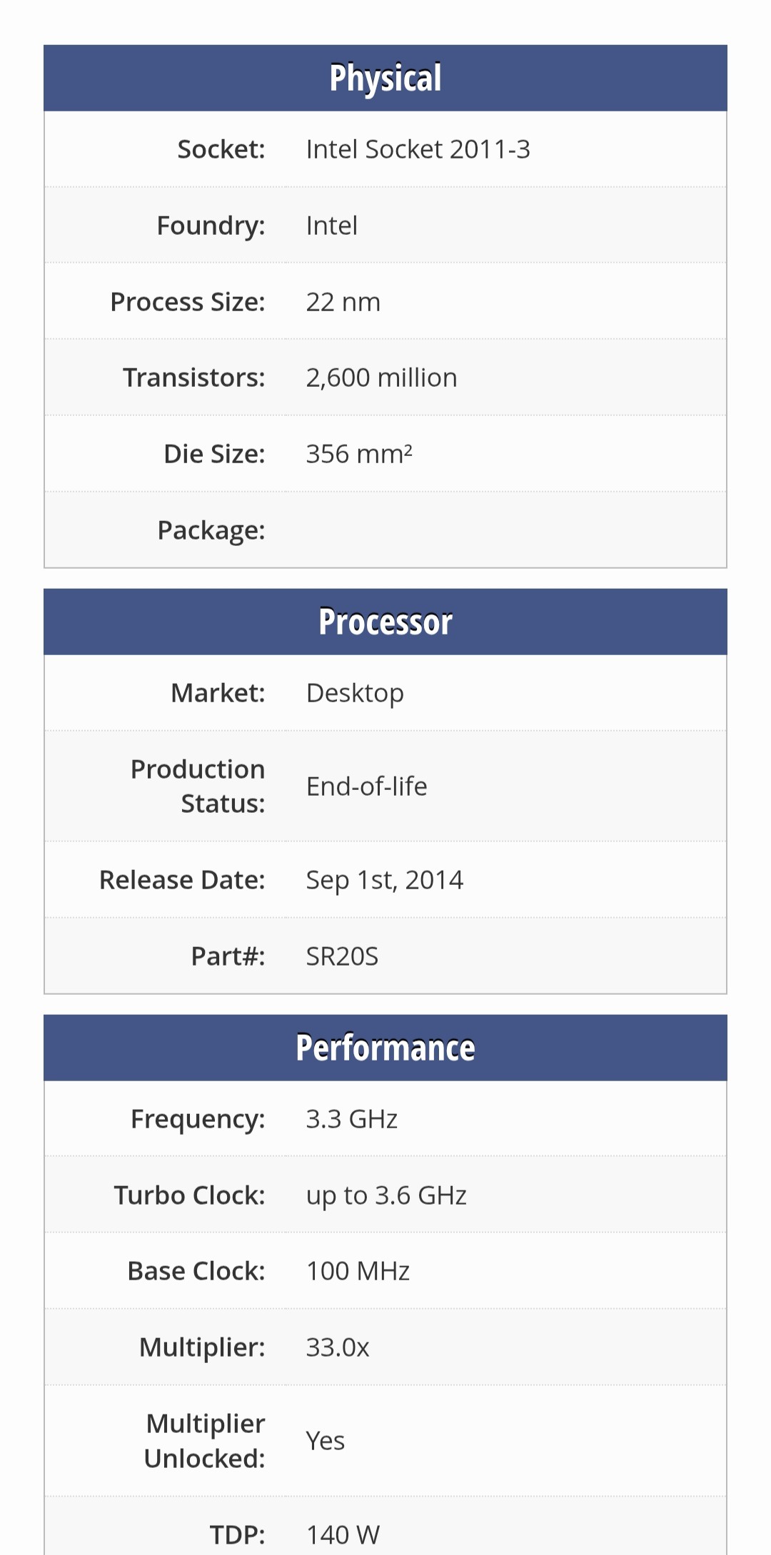 وقت بخیر ، این مدل پردازنده برای کاربران نیمه حرفه ای و سیستم های کاری کوچک ساخته شده و از عملکرد نسبتا خوبی نسبت به پردازنده های هم رده خودش (به استثنای پردازنده های با تعداد هسته بالا سری Xeon) برخوردار هست . پردازنده برای سوکت 2011 v3 هست و 140 وات هم مصرفش هست .