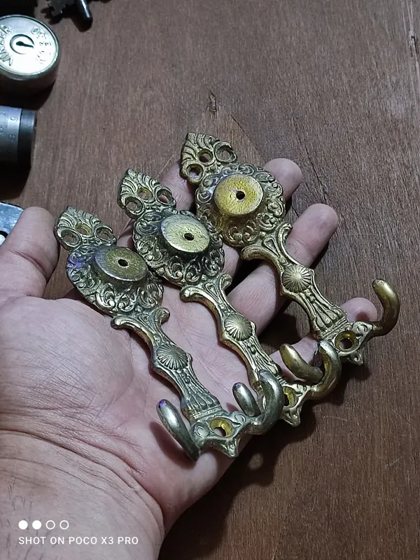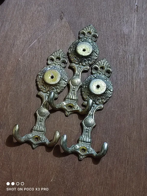 سه عدد جالباسی قدیمی برنجی محکم و حوندار و سنگین مطالق تصاویر سالم و تمیز و بکر قیمت برای هر سه مورده