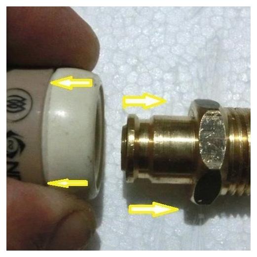 سر دیگر شیلنگ که به بخاری وصل میشه نیز مشابه سری است که به رابط وصل میشه ولی کوچکتره و مستقیم به بخاری وصل میشه که اون سر هم با یک فشار مختصر به ورودی گاز بخاری قفل میشه و براحتی نیز با کشیدن پوسته ضامن سر شیلنگ از بخاری جدا میشه