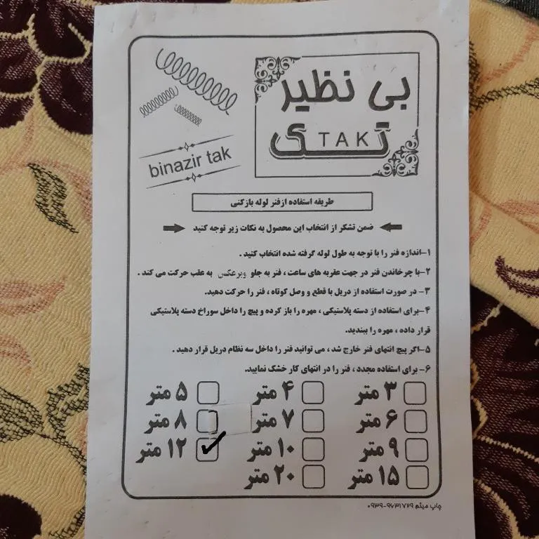 اگه متراژ کمتر خواستید تو فروشگاهم هست یا پیام بدین از 1متر تا 15 متر دارم هر اندازه خواستید پیام بدین اختصاصی کنم براتون .