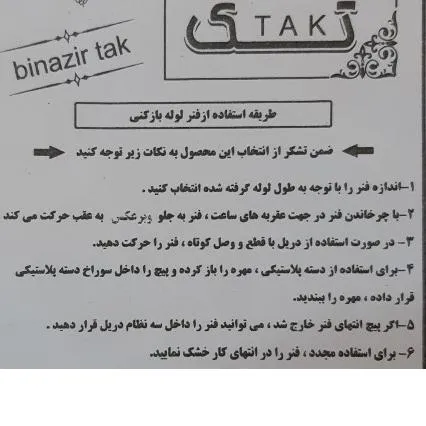 توجه : دسته رو باید به پیچ انتهای فنر ببندید و فنر رو داخل مسیر لوله وارد کنید و با دسته فنر رو بچرخونید همچنین می توانید برای راحتی کار و عملکرد بهتر و قویتر از دریل برقی استفاده کنید و پیچ انتهای فنر رو به دریل متصل کنید و با کمک دریل گرفتگی لوله را راحت تر باز کنید .