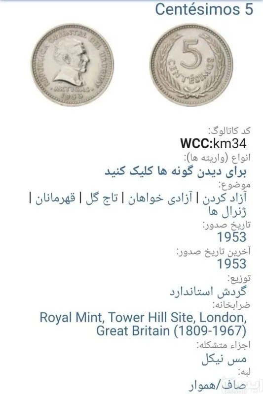 سکه5سنتیموز اروگوئه 1953(کد5764)