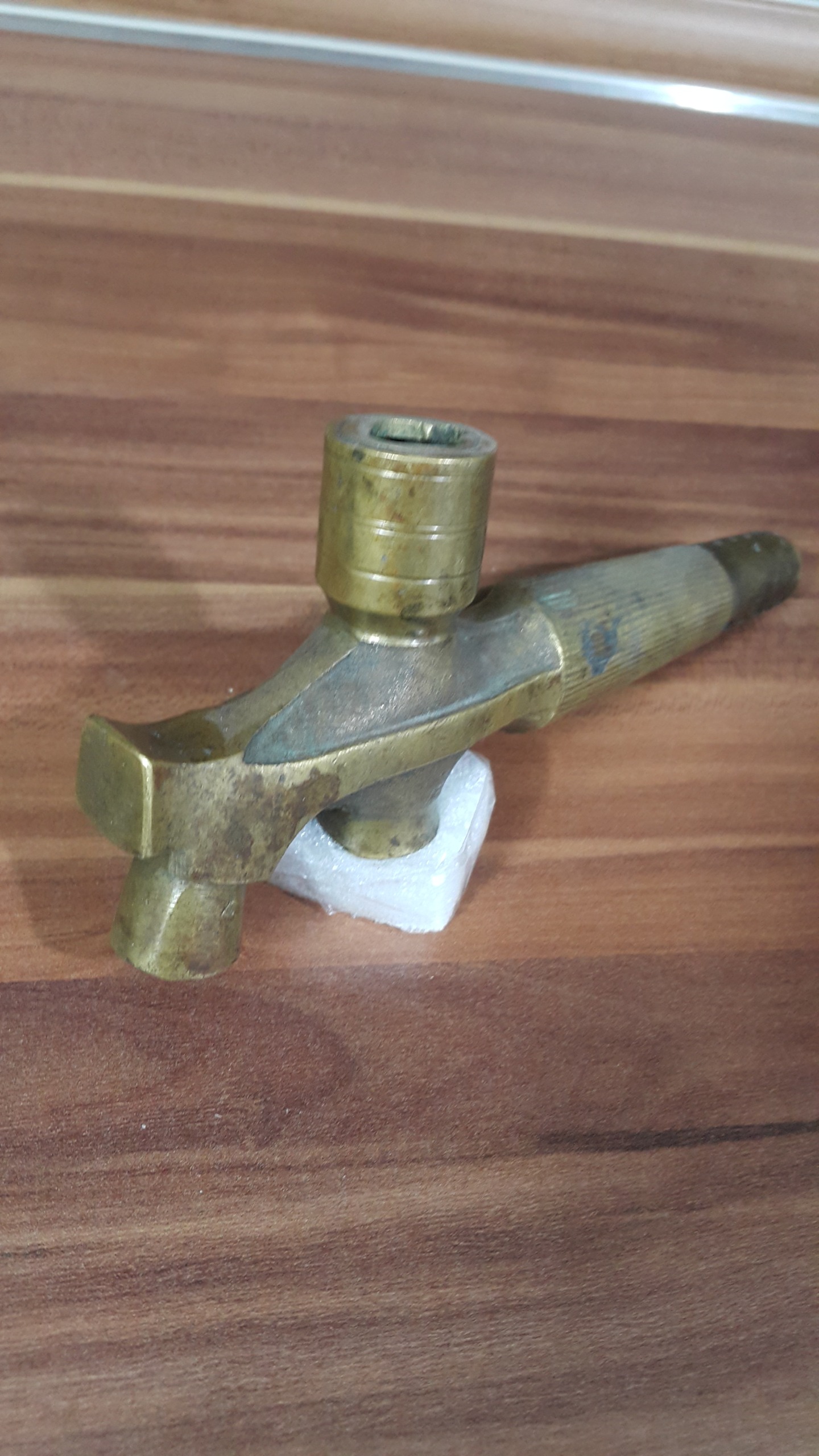 شیر روسی بسیار زیبا و خاص . انتهای شیر تضفیه داره گویا مال بشگه شراب یا مایعات دیگه بوده . متاسفانه کلید این شیر گم شده . از کلیدش تصویر دارم امکانش هست عین اونو بسازیم ولی خوب به حوصله و علاقه کسی که میخره بستگی داره