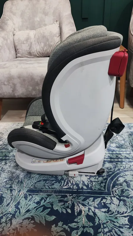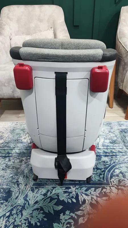 کمربندهای ایمنی این صندلی کاملا مشابه کمربند ایمنی سواری شماست . مهم ترین ویژگی این صندلی چرخش 360 درجه ان است که بسیار کارآمد است . زمانی که چرخش 360 درجه اجرا شود حالت خوابی کاملا مشابه به کریر همچنین خارج از حالت 360 درجه این صندلی حالت خواب مناسبی را برای کودک شما خواهد داشت . یکی دیگر از خصوصیات این آیتم این است که در حالت 90 درجه هم میتوانید از ان استفاده نمایید. کناره های این صندلی شامل ضربه گیر SPS است و این مدل دارای برچسب ایمنی نیز می باشد .