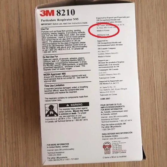 ماسک 100% اصلی 3m 8210 اصل کره N95