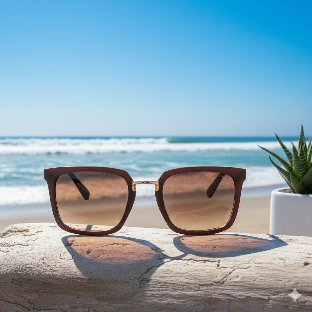 شیشههای این عینک با رنگ قهوهای خاص، نه تنها جلوه زیبایی دارند، بلکه از چشمها در برابر اشعههای مضر UV محافظت میکنند. این موضوع باعث میشود که هنگام استفاده در نور خورشید، چشمان شما احساس راحتی داشته باشند و از خستگی و آسیبهای ناشی از تابش مستقیم نور جلوگیری شود.