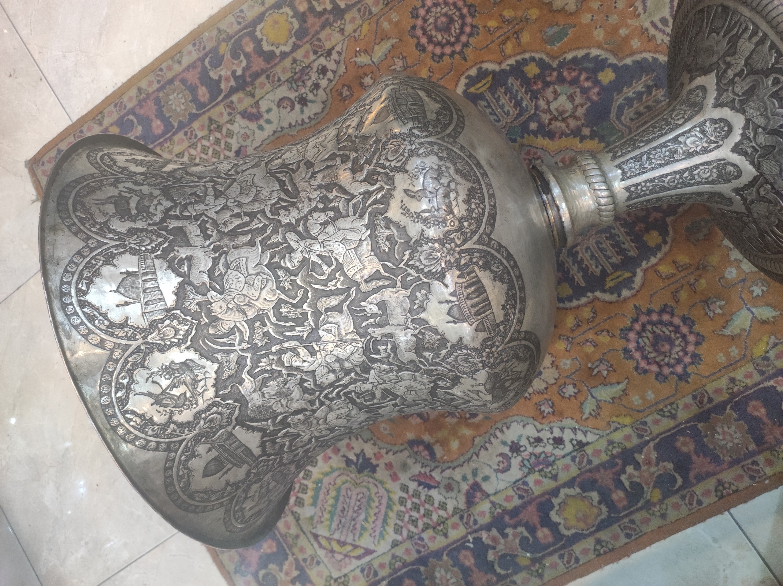 شاهکار قلم زنی بیتکرار خود ظرف قاجاری