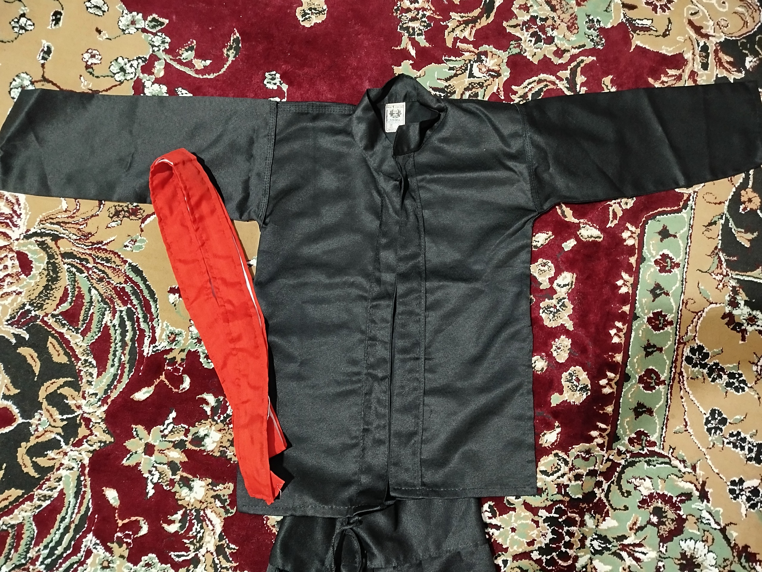 لباس کونگ فو سالم و درحد نو چندبار بیشتر پوشیده نشده سایز یکه مناسب 8 تا 10 سال به همراه به عدد کمربند قرمز