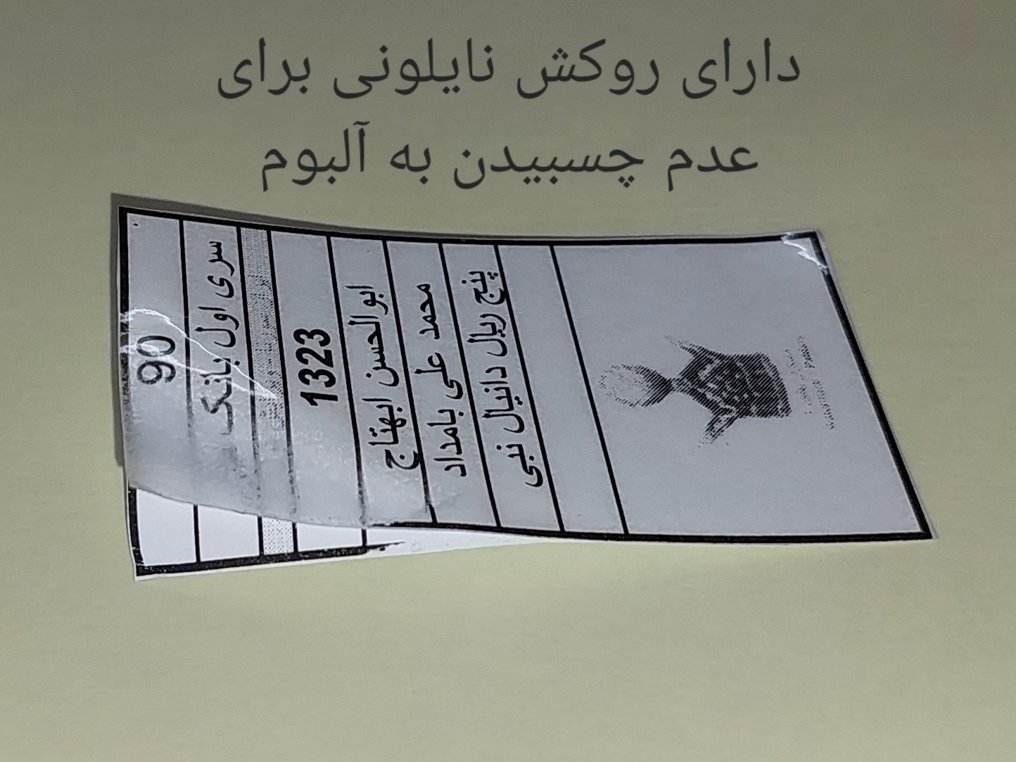 دارای روکش نایلونی جهت جلوگیری از چسبیدن به آلبوم در درازمدت و بالابردن عمر برای نمونه روکش یک مورد جدا شده در تصاویر مشخص میباشد