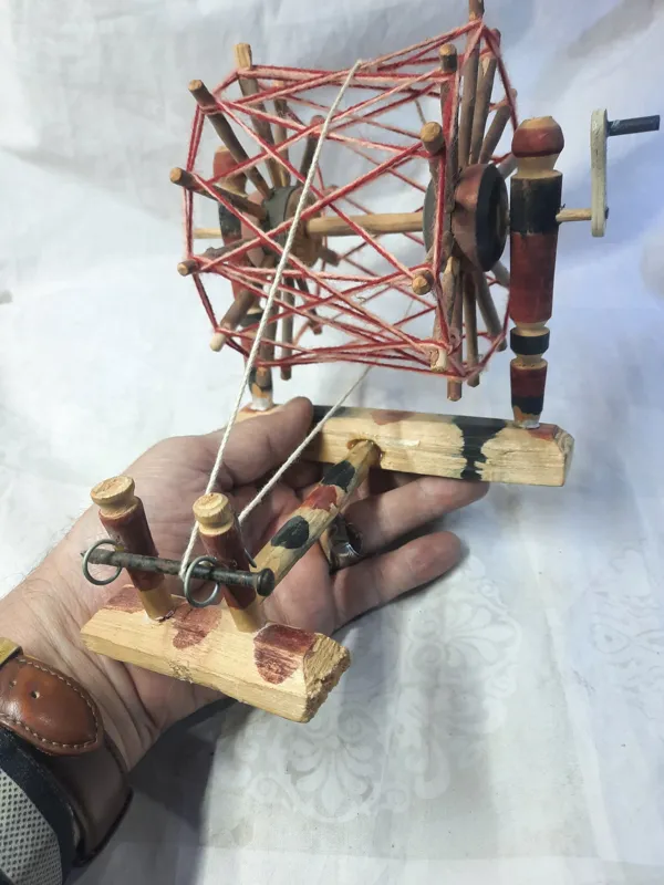 ماکت چوبی چرخ پشم ریسی با قدمتی حدودا 30 ساله