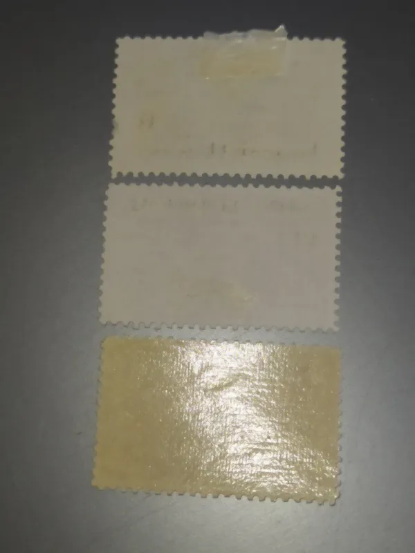دو تمبر از سه تمبر موجود بدون چسب و مهرخورده بوده و تصویر از خود کالای ارسالی بوده و کارشناسی آن بعهده شما میباشد.