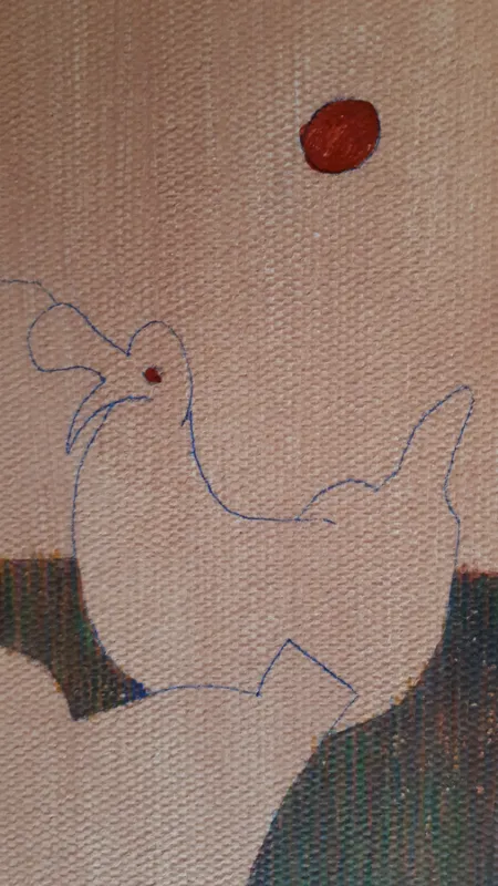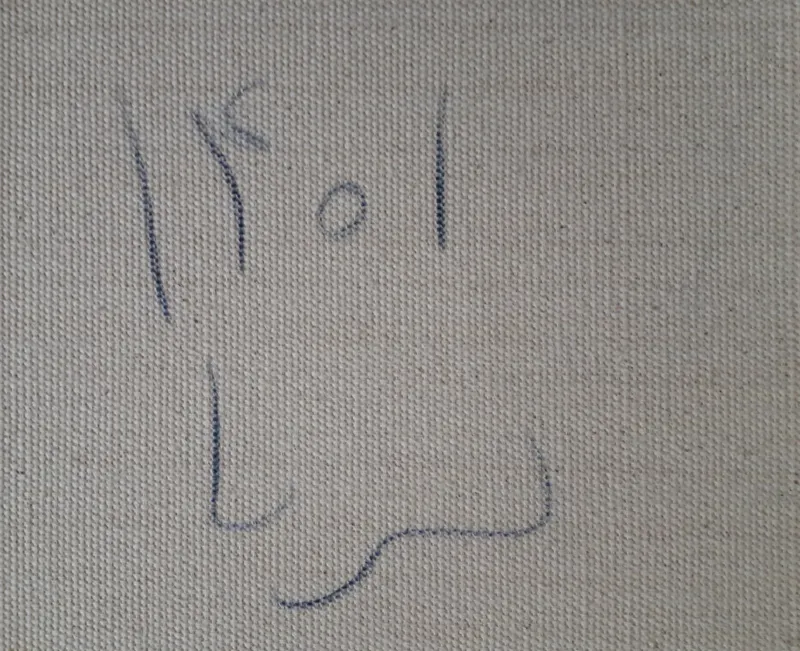 نقاشی رنگ روغن، مدادرنگی روی پارچه بوم بدون زوار، حدود ابعاد با احتساب کادر:17×25، پشت تاریخ و امضا